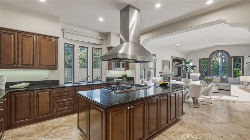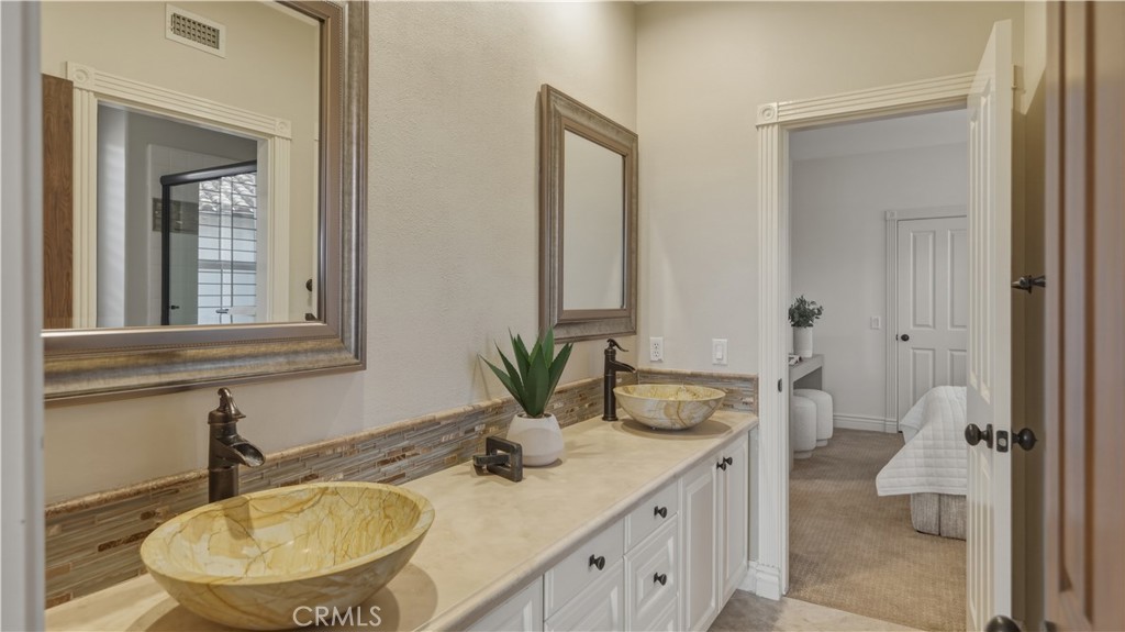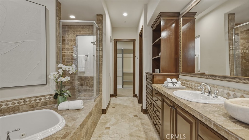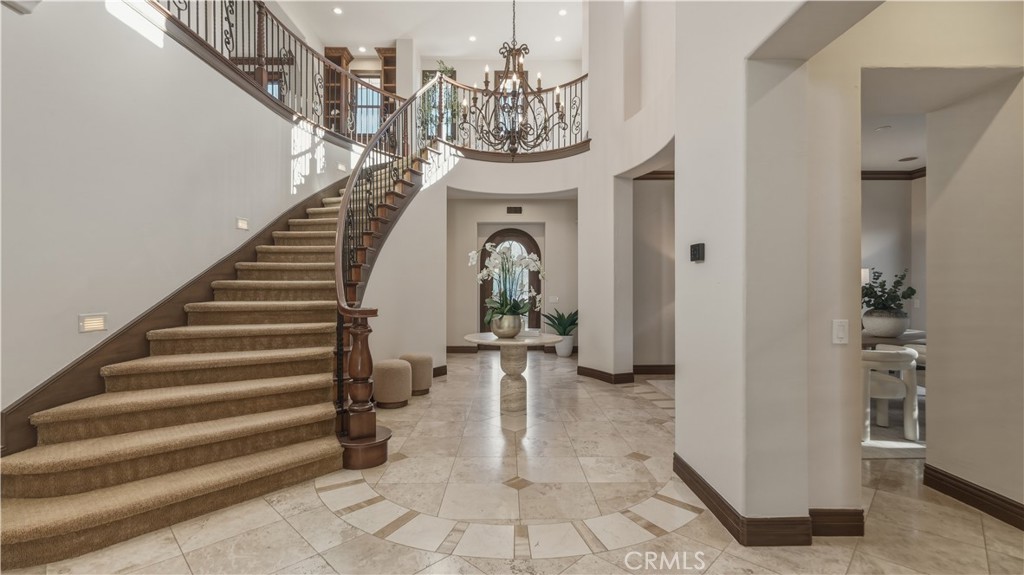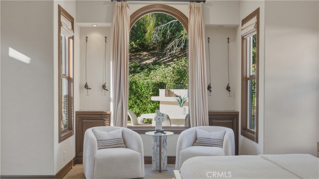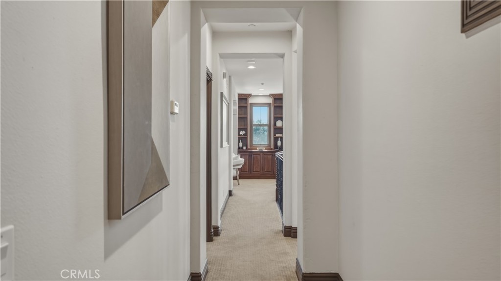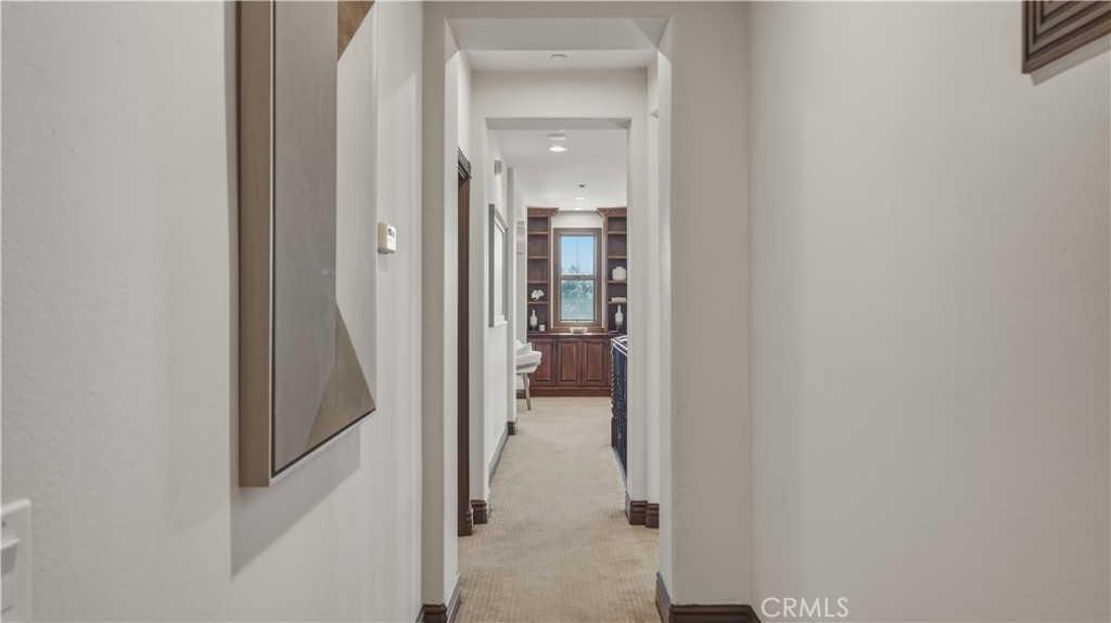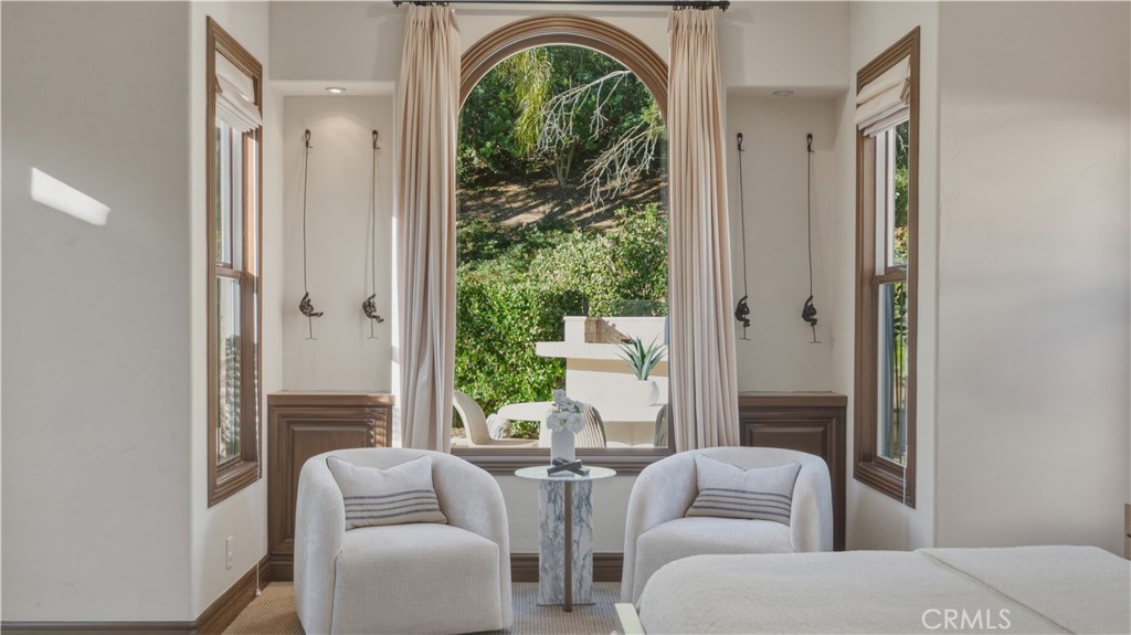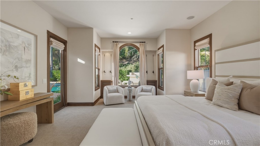 Set within the prestigious guard-gated Coastal Canyon enclave of Sausalito, this thoughtfully upgraded residence is ideally positioned at the end of a quiet cul-de-sac, offering enhanced privacy and a peaceful setting surrounded by open green spaces. The expansive, light-filled floor plan features four generously sized bedrooms, four full bathrooms, powder room, dedicated office, and a spacious bonus room. Designed for seamless indoor-outdoor living, the main living areas open to multiple entertaining patios, a custom built-in bar and barbecue area, and a private resort-style pool and spa--creating an inviting environment for both everyday living and gatherings. An upper-level deck provides tranquil ocean views and additional outdoor space to relax and unwind. Interior upgrades include travertine flooring throughout much of the main level, new carpet, custom crown moldings, extensive woodwork, and fresh interior paint throughout. The gourmet kitchen is appointed with Viking and Sub-Zero appliances, granite countertops, ample cabinetry, and opens directly to a spacious great room ideal for entertaining and casual living. The home is complete with a main-level primary suite and a secondary guest bedroom, offering exceptional convenience and flexibility for guests or multi-generational living. The property offers both tranquility and convenience, just moments from premier shopping, world-class dining, and Southern California's finest beaches.