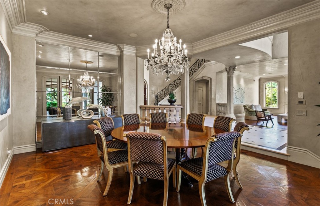 The entry level welcomes with a dramatic two-story foyer and sweeping staircase. The main floor is thoughtfully arranged for both everyday comfort and elevated entertaining, featuring formal and informal living spaces, a billiards lounge with wet bar, temperature-controlled wine room, powder bath, expansive laundry room, two en-suite bedrooms, and an oversized multi-car garage-- all located within just two levels. The chef's kitchen flows into a casual dining area and family room, where pocketing glass doors open to create seamless indoor-outdoor living.