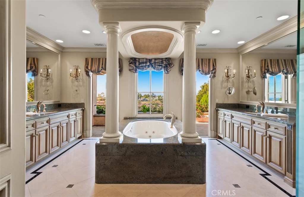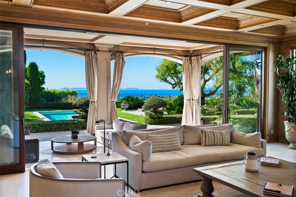 Outdoors, the flat, usable lot sets this property apart within Pelican Hill. Resort-inspired amenities include a pool and spa, BBQ pavilion, multiple covered loggias, curated gardens, and generous lounging and dining terraces--all oriented toward the ocean, harbor, and city skyline.
