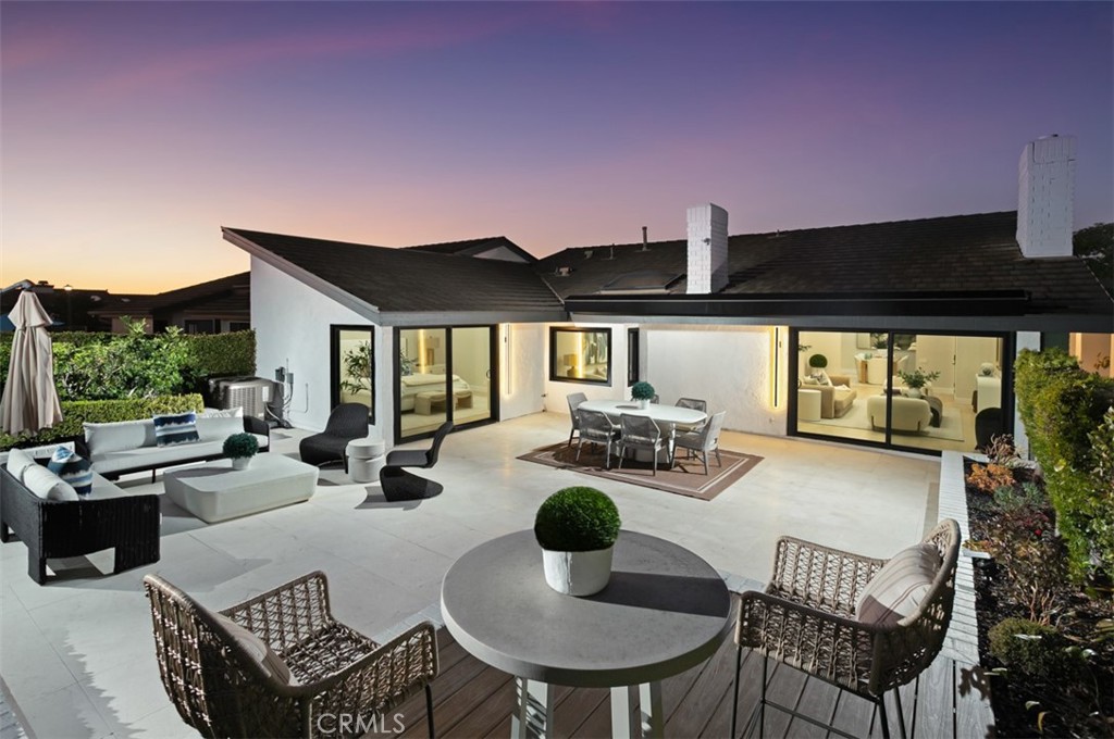 Discover refined coastal living in this beautifully customized Contemporary home located in the exclusive, guard-gated community of Jasmine Creek. Encompassing over 1,900 square feet on a single level, this residence offers privacy, resort-style amenities, and a premier Corona del Mar location just moments from the ocean. Designed for seamless indoor-outdoor living, the home features two spacious bedrooms and two luxurious bathrooms, along with a living room, entertainment room, private dining room, and a gourmet kitchen with breakfast nook. Multiple rooms, including the main suite, open directly to the expansive rear yard and patio, creating the perfect flow for entertaining or relaxing. The chef's kitchen boasts a Forno 6-burner range, high-end appliances, custom cabinetry, and a pantry with pull-out drawers. The main suite offers a generous walk-in closet and spa-inspired bath with double vanities, a walk-in shower, and a freestanding soaking tub. A secondary suite and charming private patio add to the thoughtful design. Custom stone landscaping, a tranquil waterfall, and walk-up deck enhance the outdoor living experience, while newer appliances, air conditioning, and meticulous finishes complete the home. Move-in ready and crafted for comfort and style, this Jasmine Creek gem presents a rare opportunity to enjoy coastal luxury in one of Corona Del Mar's most coveted communities.
