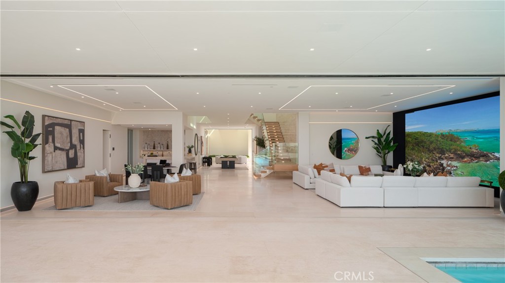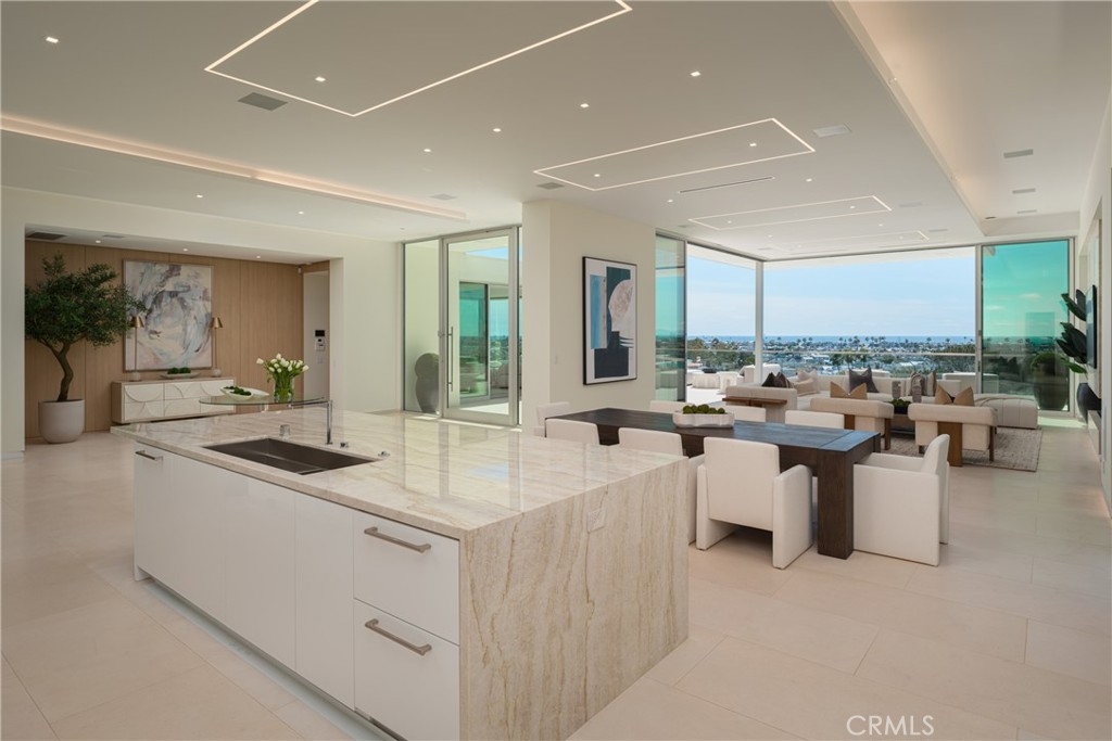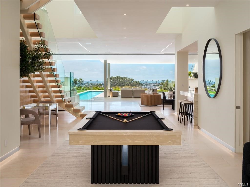 1119 Dolphin Terrace, a generational trophy property designed by Christopher Brandon showcases exceptional modern design and architectural excellence located in the heart of Corona Del Mar's coveted Irvine Terrace community. This meticulously crafted estate, taking six years to reach completion, spans approximately 10,200 sqft of pure luxury on a uniquely deep and expansive lot. This remarkable property boasts 5 bedrooms, including 2 primary bedrooms, and 8 baths, offering unparalleled comfort and sophistication. The interiors feature massive scale and soaring ceiling heights, creating a sense of grandeur that defines Southern California coastal living at its finest. Entertain with ease in the expansive living spaces, highlighted by a media wall with a jaw-dropping 219" LCD TV wall, a well-equipped bar + glass cellar, and two kitchens for culinary enthusiasts. Motorized pocket doors seamlessly blend indoor and outdoor living, leading to a spectacular 65' lap pool that invites you to relax and unwind while enjoying breathtaking ocean, jetty, Balboa, and coastline views. For those who prioritize health and wellness, the property includes a spacious wellness center offering full-size gym, sauna, steam room, and meditation area, ensuring a holistic approach to your total well-being. The attention to detail is evident throughout, making this estate one of the most captivating and exciting properties to ever be publicly offered for sale in Corona Del Mar. Additional features enhance the allure of 1119 Dolphin Terrace, such as its proximity to the Newport Beach Country Club and Fashion Island, placing world-class amenities at your doorstep. Enjoy the convenience of walking to Balboa Island and relish the central location within Newport Beach, providing easy access to the best that Southern California has to offer. This is not just a residence; it's a lifestyle statement, a testament to luxury living in one of the most desirable locations on the West Coast. Seize the opportunity to own a landmark property that transcends the ordinary, a true embodiment of Southern California's finest. Welcome home to 1119 Dolphin Terrace, where every detail reflects a commitment to unparalleled quality and refinement.