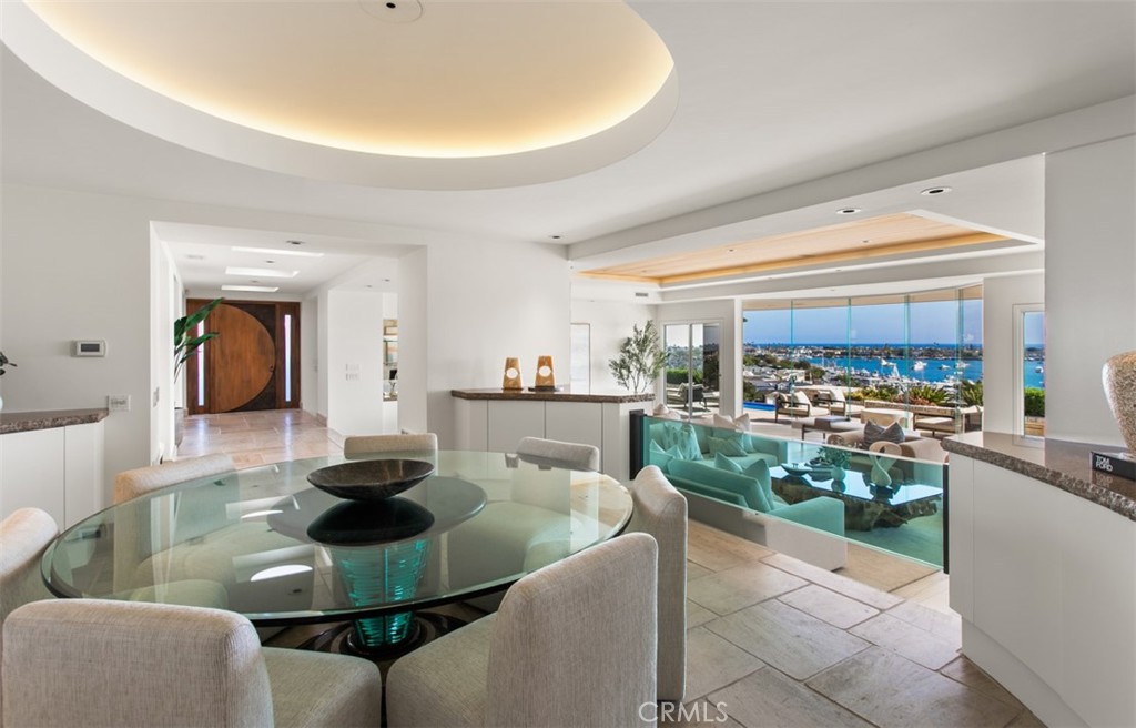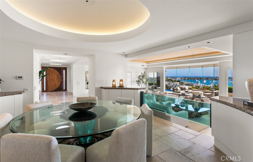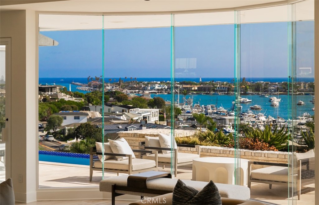 Perched on the front row of Corona del Mar's coveted Irvine Terrace, 1535 Dolphin Terrace commands some of the most captivating views in all of Orange County. With an unmatched vantage point overlooking the mouth of the Newport Jetty, Harbor, Balboa Island, Catalina Island, and the sparkling Pacific and beyond, this property offers a front-row seat to the region's most iconic sights--including nightly city lights, Fourth of July fireworks, and the world-famous Christmas Boat Parade. Ideally positioned across from the Newport Beach Country Club and moments from Fashion Island, Balboa Island, and the CDM Village, this single-level home offers both comfort and convenience in one of the coast's most desirable neighborhoods. Inside, walls of glass frame the panoramic vistas from the great room, kitchen, and primary suite. The open-concept layout is perfect for entertaining, with a glass-enclosed dining area and expansive terrace for al fresco gatherings year-round. The resort-style backyard features an infinity-edge pool and elevated viewing terrace, ideal for watching boats glide through the channel by day and enjoying glowing sunsets and city lights by night. The primary suite includes a cozy fireplace and a spa-like bathroom with ocean-facing soaking tub, double vanities, and a walk-in shower. Whether you're looking to move right in, renovate, or build your dream home, this is a rare opportunity to own one of CDM's most iconic view properties in an unbeatable location.
