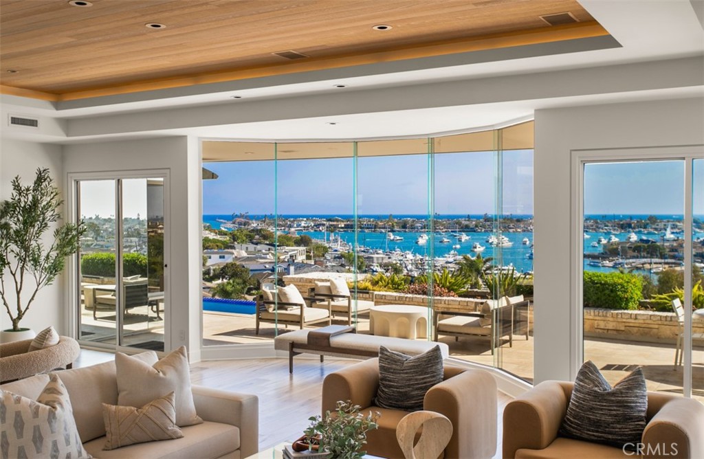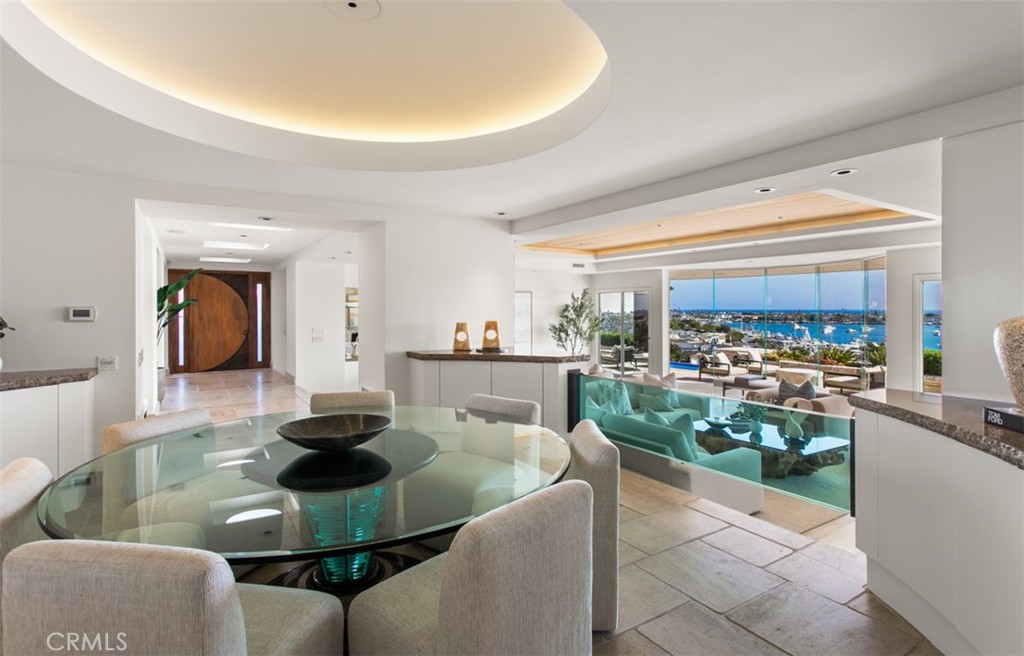 Perched on the front row of Corona del Mar's coveted Irvine Terrace, 1535 Dolphin Terrace commands some of the most captivating views in all of Orange County. With an unmatched vantage point overlooking the mouth of the Newport Jetty, Harbor, Balboa Island, Catalina Island, and the sparkling Pacific and beyond, this property offers a front-row seat to the region's most iconic sights--including nightly city lights, Fourth of July fireworks, and the world-famous Christmas Boat Parade. Ideally positioned across from the Newport Beach Country Club and moments from Fashion Island, Balboa Island, and the CDM Village, this single-level home offers both comfort and convenience in one of the coast's most desirable neighborhoods. Inside, walls of glass frame the panoramic vistas from the great room, kitchen, and primary suite. The open-concept layout is perfect for entertaining, with a glass-enclosed dining area and expansive terrace for al fresco gatherings year-round. The resort-style backyard features an infinity-edge pool and elevated viewing terrace, ideal for watching boats glide through the channel by day and enjoying glowing sunsets and city lights by night. The primary suite includes a cozy fireplace and a spa-like bathroom with ocean-facing soaking tub, double vanities, and a walk-in shower. Whether you're looking to move right in, renovate, or build your dream home, this is a rare opportunity to own one of CDM's most iconic view properties in an unbeatable location.