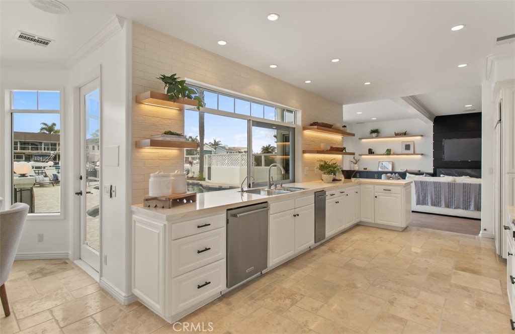 Discover the epitome of coastal elegance at 16201 Santa Barbara Lane, a stunning waterfront residence tucked away in the prestigious Huntington Harbor community. This impeccably maintained, turnkey residence offers a rare opportunity to experience the ultimate in coastal luxury, blending timeless elegance with modern comfort across 4,125 square feet of thoughtfully designed living space. Boasting 5 spacious bedrooms and 4 full bathrooms, this home is ideal for multigenerational living or accommodating guests with ease. The light-filled open floor plan features soaring ceilings, walls of glass, and seamless indoor-outdoor flow, creating an inviting atmosphere perfect for both relaxed family living and sophisticated entertaining. At the heart of the home, the gourmet kitchen is a chef's dream--complete with top-of-the-line stainless steel appliances, custom cabinetry, a generous center island, and water views that make meal prep a joy. The living and dining areas offer uninterrupted views of the harbour, with multiple access points to the expansive patio, ideal for al fresco dining, lounging, or simply enjoying the ocean breeze. Upstairs, the primary suite is a true sanctuary, featuring a private waterfront balcony, cozy fireplace, spa-like ensuite bath with soaking tub, dual vanities, and an oversized walk-in closet. Additional bedrooms are equally well-appointed, offering flexibility for a home office, gym, or creative space. Step outside to your private paradise--complete with a 40-foot boat dock, providing easy access to open water. Whether you're cruising the coast, kayaking through the channels, or entertaining guests as the sun sets over the marina, this home offers a lifestyle that few can match. Located on a tranquil cul-de-sac in one of Huntington Harbor's most coveted neighborhoods, this exceptional property combines the peace of waterfront living with convenient proximity to shops, dining, award-winning schools, and the beach.