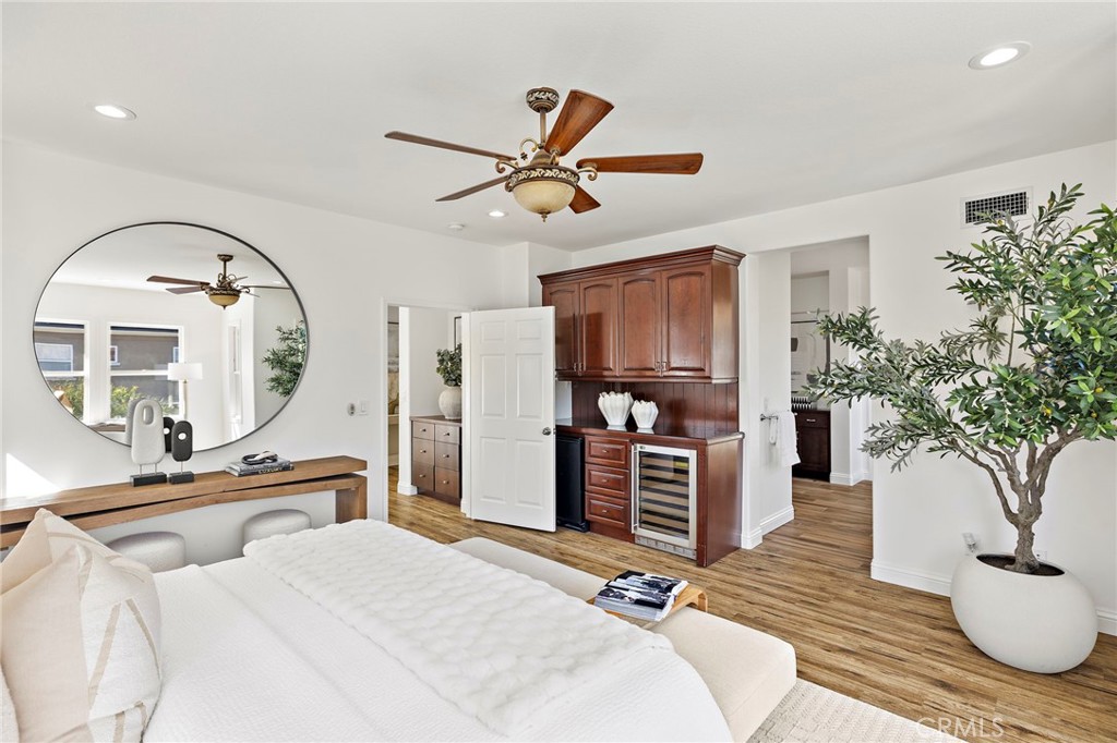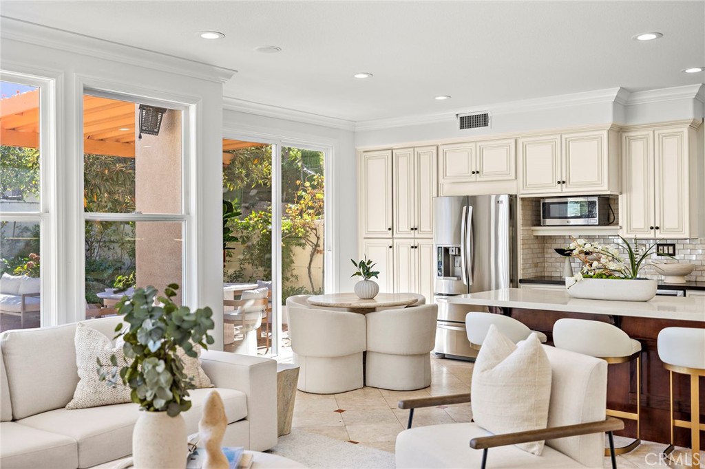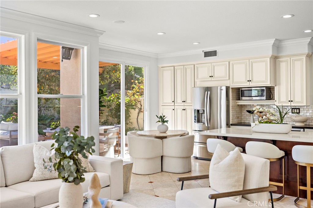 Nestled within the guard-gated community of Northpark, 18 Bel Spring is a refreshed and light-filled residence that blends comfort, functionality, and style in one of Irvine's most sought-after enclaves. Soaring ceilings greet you upon entry, creating a bright and airy formal living space that sets the tone for the home's open and inviting layout. The remodeled kitchen features modern finishes, updated appliances, and a seamless connection to the expanded family room, dining area, and breakfast nook--ideal for everyday living and entertaining. Natural light floods the interiors, while the deep backyard offers the perfect extension of indoor-outdoor living, featuring multiple seating areas to host and entertain. Upstairs, the spacious primary suite includes a dry bar with dual mini-fridges and a beautifully updated bathroom with an expanded walk-in shower. Two additional bedrooms share a full bath, completing this well-designed floor plan. Located just steps from Hicks Canyon Elementary and multiple community parks, residents enjoy resort-style amenities including pools, tennis courts, and scenic walking trails--all within close proximity to shopping, dining, and freeway access.