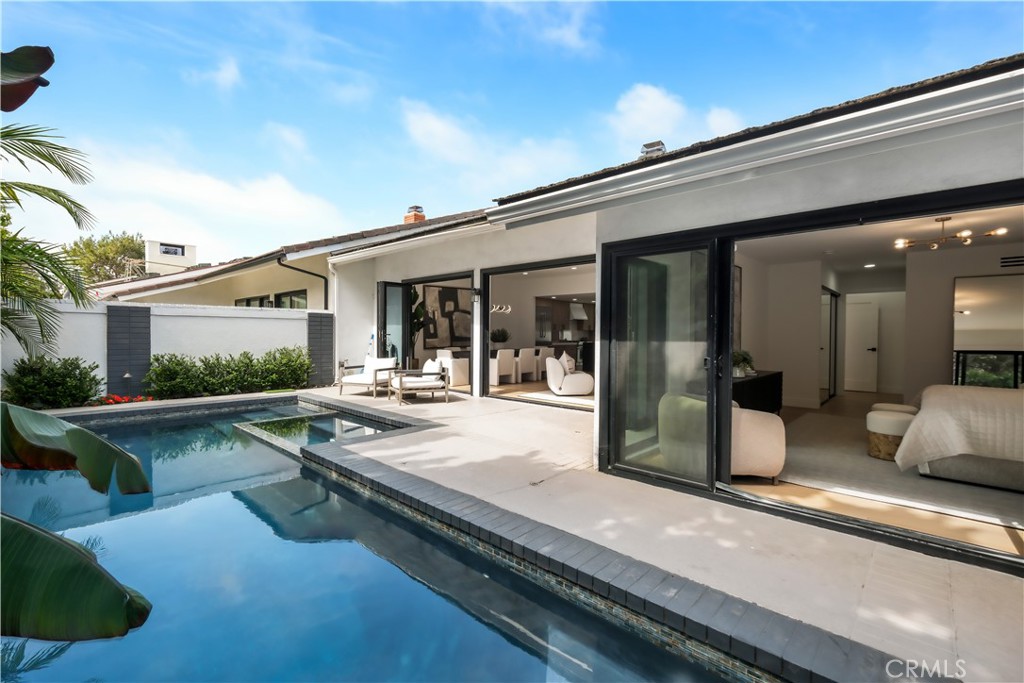Positioned within the coveted Big Canyon community of Newport Beach, 22 Rue Cannes presents a rare offering of effortless luxury and refined coastal living. This beautifully reimagined single level residence seamlessly blends comfort and sophistication, creating an inviting yet elevated living experience. A welcoming front patio sets the tone upon arrival, offering a quiet place to unwind and enjoy the surrounding neighborhood charm. Beyond the entry, a private backyard retreat unfolds, complete with a shimmering pool and expansive folding doors that dissolve the boundary between indoors and out, allowing for true California style living. Set on a premier oversized corner lot spanning over 7,000 square feet, the property offers exceptional privacy and a sense of tranquility throughout. Inside, the thoughtfully remodeled interior showcases a bright, open concept floor plan enhanced by contemporary finishes and an abundance of natural light. The primary suite serves as a serene escape, featuring direct access to the poolside setting and dual closets, including a generous walk in, designed for both comfort and functionality. With ease and versatility, this residence embodies the highly desirable lock and go lifestyle. Ideally located just moments from world class dining, upscale shopping at Fashion Island, and Newport's renowned beaches, this residence captures the essence of modern coastal elegance.