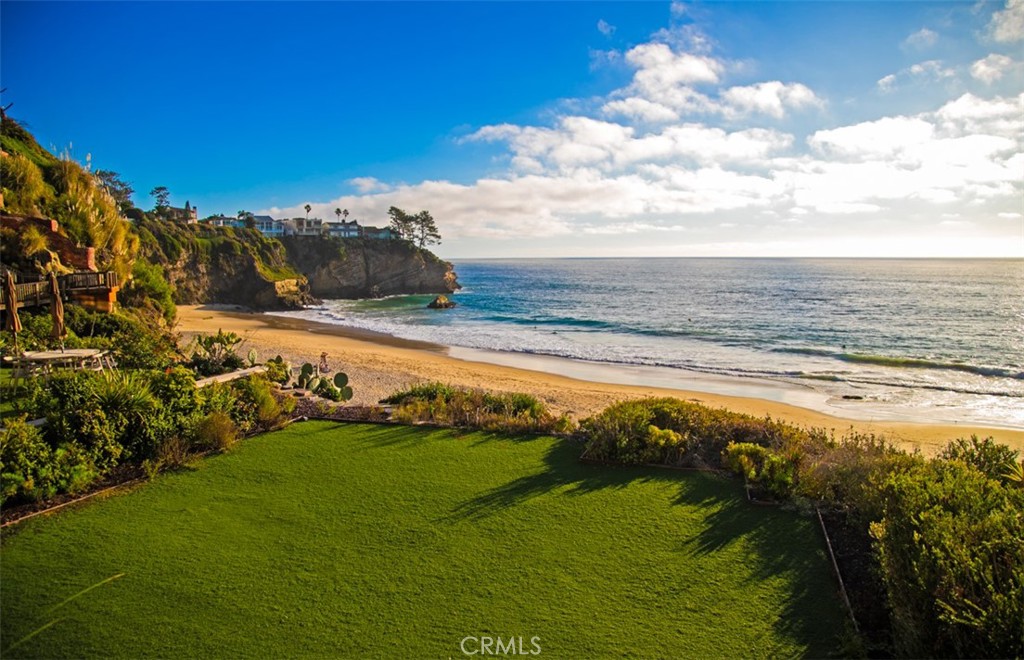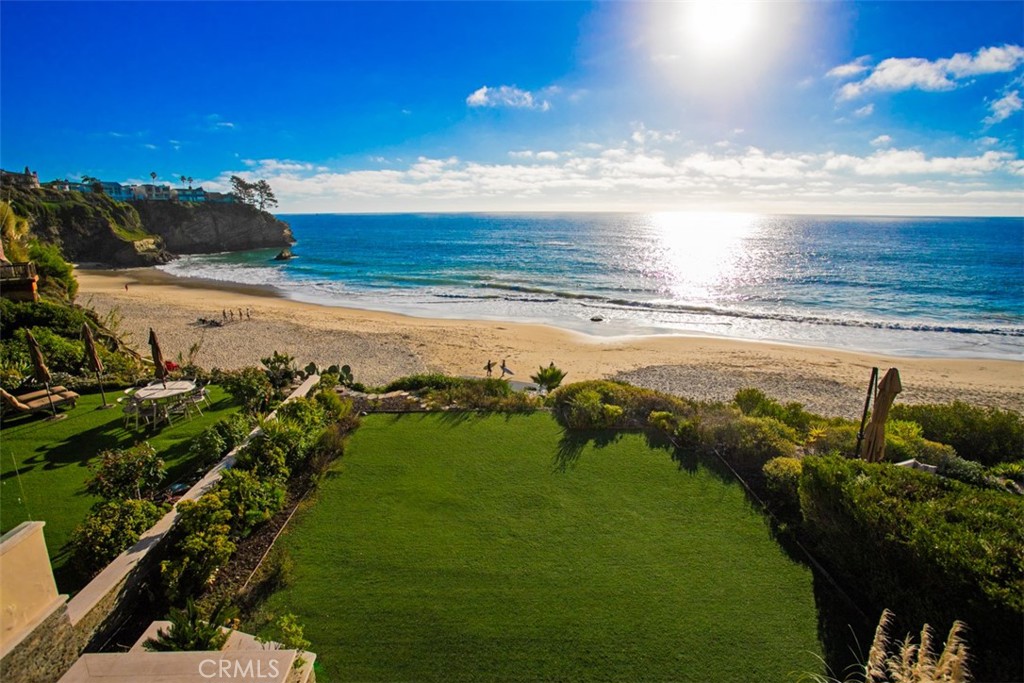 A truly unparalleled offering, this rare oceanfront estate in the coveted, guard-gated enclave of Three Arch Bay presents an extraordinary chance to shape one of Laguna Beach's most significant coastal properties. Poised above the community's iconic private cove, the residence commands sweeping, unobstructed views of the Pacific and enjoys direct access to the sand--an amenity few homes along the coast can claim. Set on a sprawling, flat oceanfront parcel with a pool, spa, and meticulously landscaped grounds, the property offers a spectacular setting where land, sea, and architecture converge. The existing structure--stripped to the studs and ready for transformation--provides an exceptional framework for the next owner's vision. Towering ceilings, vast expanses of glass, floating staircases, and a commercial-grade elevator lay the groundwork for a world-class contemporary retreat that lives in rhythm with the shoreline just beyond. Every level opens to expansive terraces and floor-to-ceiling sliding walls of glass, dissolving the boundary between indoors and out while capturing the drama of the coastline. The lower level spills effortlessly onto the pool terrace and oceanfront lawn, creating a breathtaking backdrop for everyday living and unforgettable gatherings. Thoughtfully designed in collaboration with FRANK and CJ Light, the home is offered with fully approved plans and permits--an invaluable advantage that allows construction to commence immediately, saving years of time and complexity. The plans also provide the ability to expand, including options for two additional bedrooms and a 700-square-foot ADU, further enhancing the estate's scale, functionality, and value. Residents of Three Arch Bay enjoy exclusive access to an array of private community amenities, including 24/7 guarded entry, a residents-only beach, clubhouse, tennis and basketball courts, playground, and beautifully maintained parks. Moments from world-renowned beaches, celebrated restaurants, and premier schools, this extraordinary estate represents a once-in-a-generation opportunity to craft a legacy home along one of Southern California's most treasured stretches of coastline.