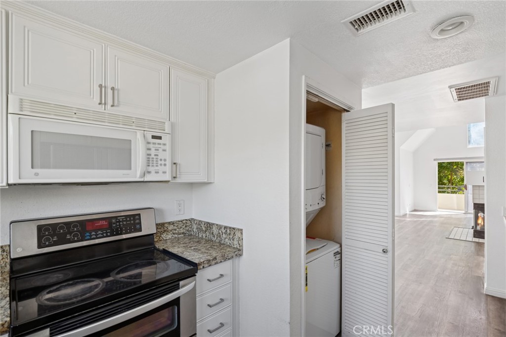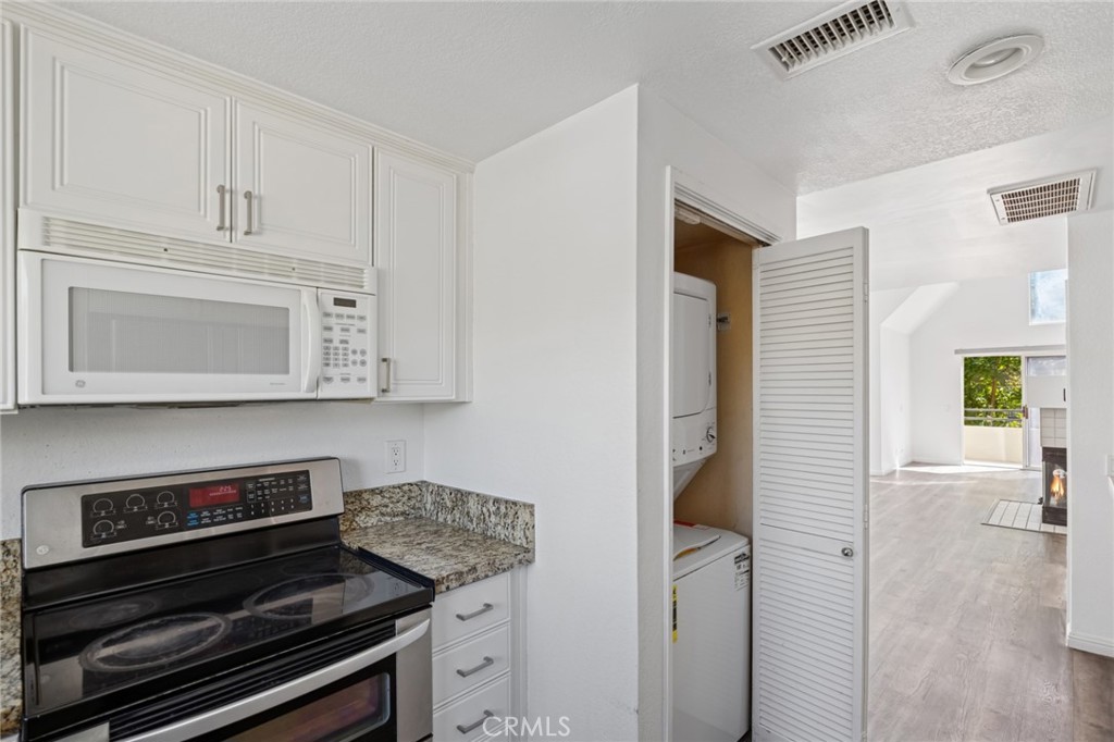 Nestled in the sought-after community of Rainbow Ridge, this updated 2-bedroom, 2-bathroom residence combines comfort, style, and convenience. A dramatic entry with soaring ceilings and expansive windows fills the interiors with natural light, enhancing the sense of space. The open-concept living area features a tiled fireplace and flows seamlessly to a large private balcony, perfect for both relaxing and entertaining.