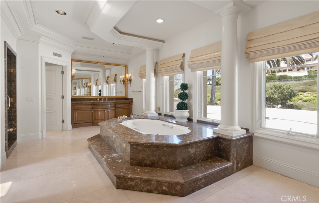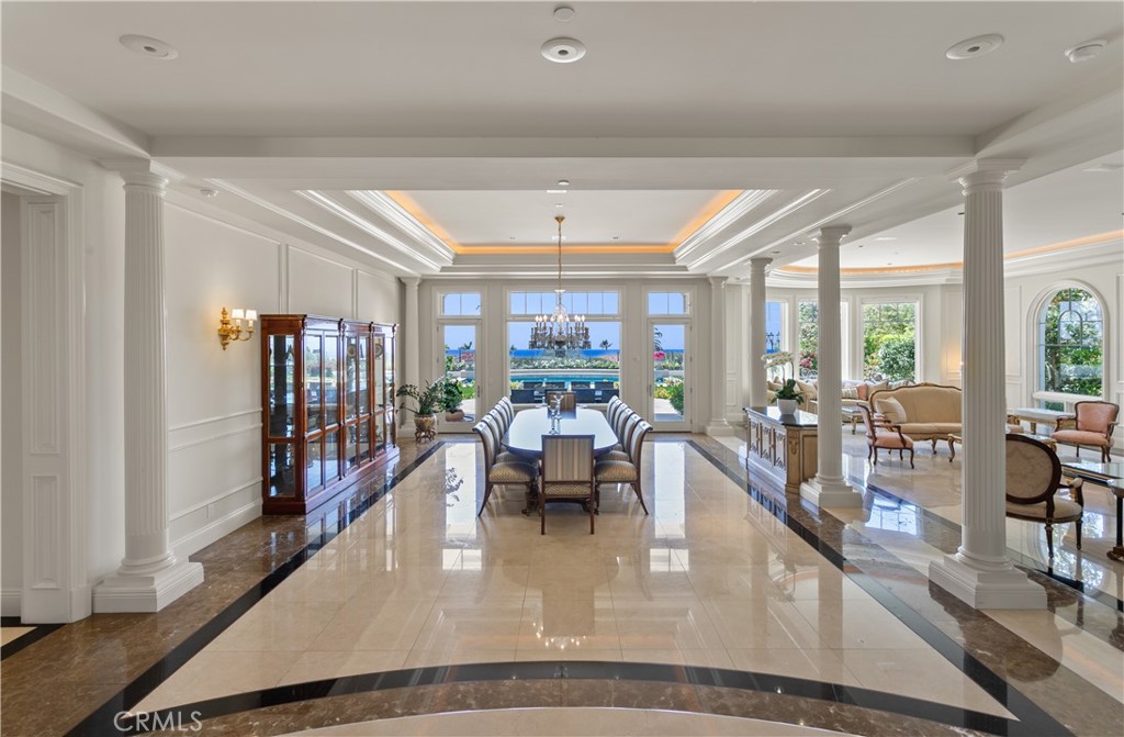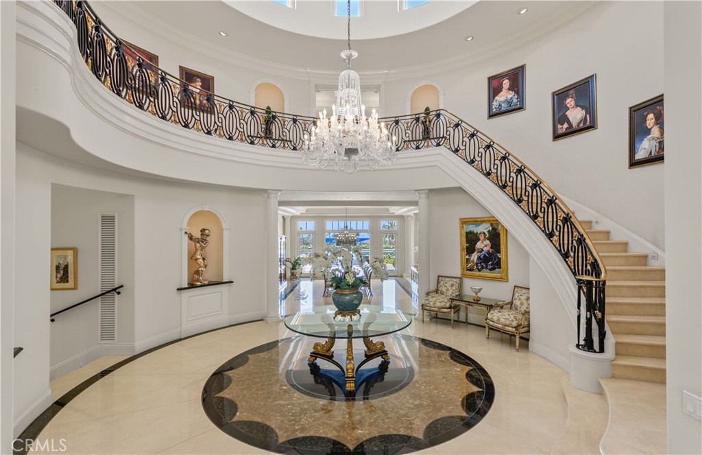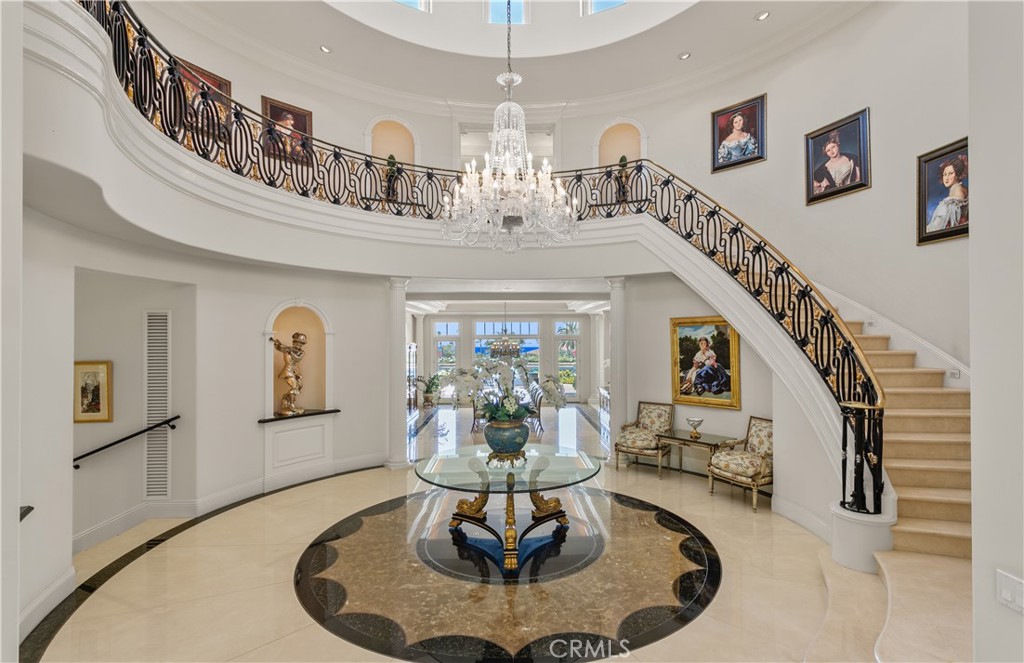Majestically situated within the highly coveted guard-gated enclave of Pelican Hill, 3 Harbor Light presents an extraordinary opportunity to own a timeless estate with sweeping views of the Pacific Ocean, Catalina Island, and Newport Harbor. Set on an expansive 9,824 square foot lot, this palatial 6-bedroom, 7.5-bath residence is defined by grand scale, meticulous craftsmanship, and coastal elegance. A soaring double-height foyer introduces the home with dramatic presence, flanked by a sweeping staircase and bathed in natural light. The formal living and dining rooms exude classic sophistication, while the gourmet chef's kitchen boasts professional-grade appliances, custom cabinetry, and an oversized island ideal for entertaining. An adjacent family room opens seamlessly to the resort-style backyard, where panoramic views meet refined outdoor living. A covered lounge with fireplace, built-in BBQ/bar, and manicured landscaping frame the oversized pool and spa--designed for both grand entertaining and quiet relaxation. The upper level hosts a sumptuous primary suite with dual bathrooms and closets, offering an ultra-luxury retreat that rivals any five-star resort. Additional en-suite bedrooms provide serene accommodations, each offering privacy and elegance. The lower level is a rare find--featuring a state-of-the-art gym, and a 10-car subterranean garage ideal for the most discerning auto collector. With close proximity to world-class golf at Pelican Hill, upscale shopping and dining at Fashion Island, and award-winning schools, 3 Harbor Light is a trophy property that captures the essence of Newport Coast luxury living.