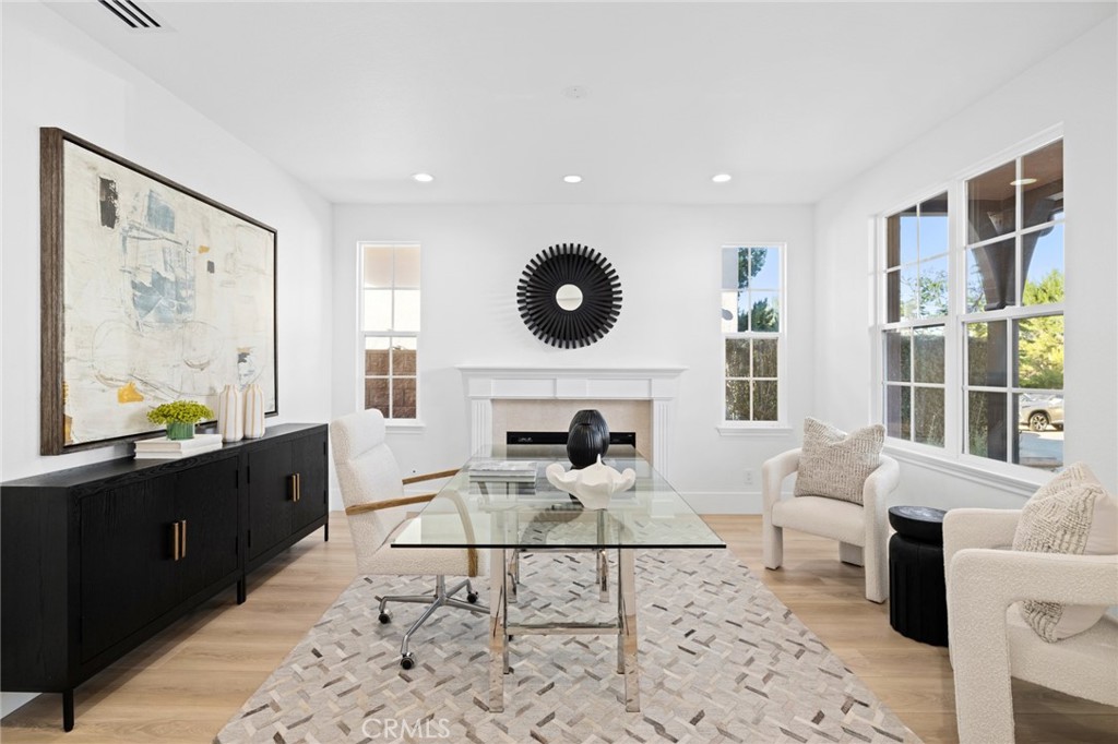 Additionally, this property features a sophisticated executive office, perfect for remote work or quiet study. The highly upgraded three-car garage includes extensive built-in cabinetry, space for an exercise retreat, and epoxy flooring.