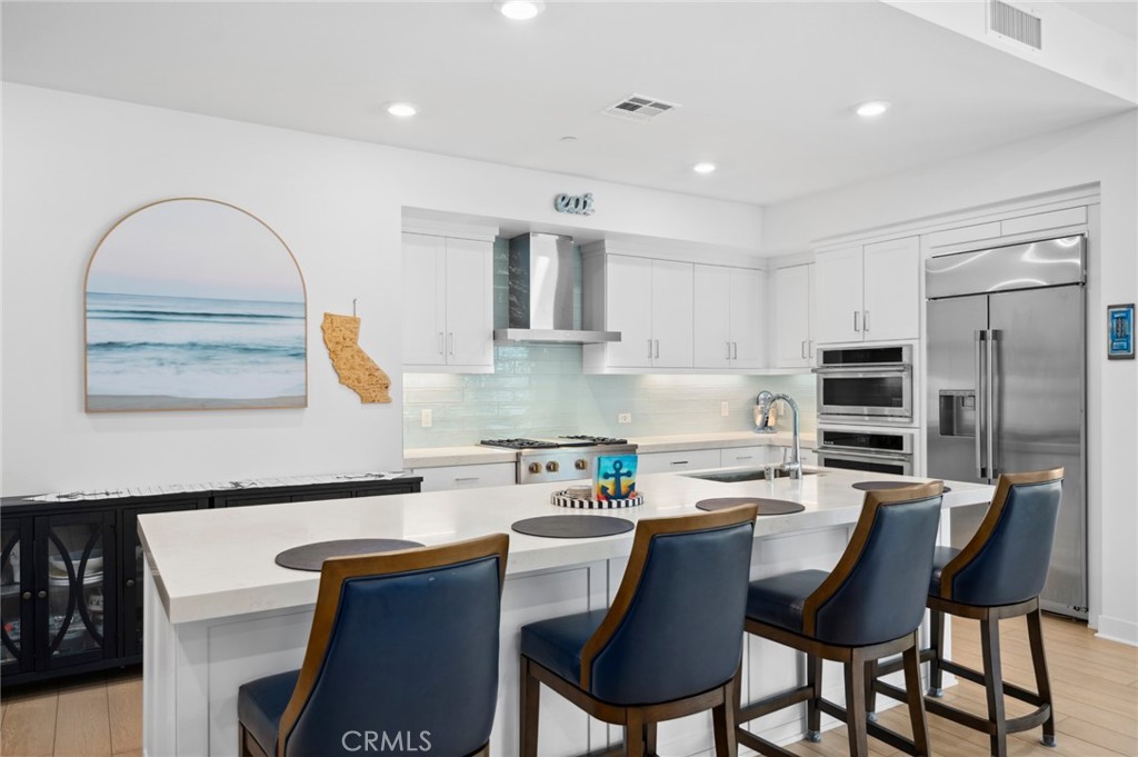 Step inside to a thoughtfully designed open floor plan with high ceilings, expansive windows, and upscale finishes throughout. The chef's kitchen impresses with high-end stainless steel appliances, quartz countertops, sleek cabinetry, designer backsplash, and under-cabinet lighting--ideal for everyday living or entertaining in style.