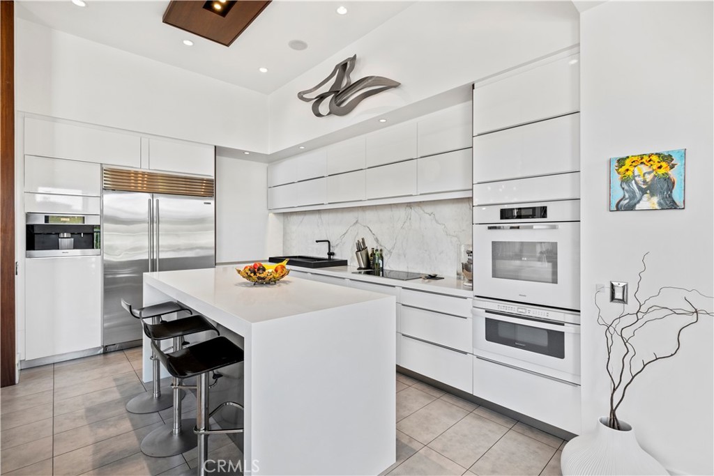 Located within the beautiful French-inspired gated community of Newport Ridge Vistas, this sophisticated town home has been completely reimagined from top to bottom offering luxury lifestyle and finishes like Italian porcelanosa marble, custom Restoration Hardware light fixtures and Sonos sound system inside and out. Fully furnished, as you enter the home you are greeted by soaring ceilings and a light filled dining room. The kitchen is a gourmet delight with 16 foot ceilings and views of the canyon featuring high gloss flat front cabinets with built-in Miele espresso machine, white marble counter tops and back splash, Subzero fridge, 2 dishwashers, a magnetic Miele cooktop and in wall ovens. The kitchen and dining area flow seamlessly to your private rear yard oasis with water feature, built-in BBQ and hot tub overlooking the tranquil canyon view. An office on the main level provides for the convenience of working from home. Take the stairs, with custom glass railing, to your primary retreat warmed by its own gas fireplace, a balcony to take in the canyon views and dual his/her closets. The spa-like primary bath features a soaking tub, walk-in shower and custom dual sink cabinetry with seated vanity area. Two secondary bedrooms and another full bathroom make this an eminently livable floor plan. Security cameras throughout, custom storage and laundry center round out this must-see property. Newport Ridge Vistas offers its own large green space and heated pool/spa as well as close-proximity to shopping, restaurants and Newport Coast Elementary School. All the amenities of Newport Ridge are nearby including pool and spa, sport courts, parks and playgrounds. *VIDEO TOUR AVAILABLE*