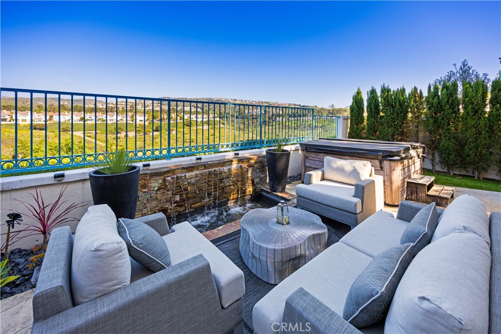 Located within the beautiful French-inspired gated community of Newport Ridge Vistas, this sophisticated fully furnished townhome has been completely reimagined, offering a refined luxury lifestyle with elevated finishes including Italian Porcelanosa stone and tile in all bathrooms, custom light fixtures, architectural lighting, and a Sonos sound system inside and out. The home is sun-drenched, light and airy, with soaring ceilings creating an immediate sense of openness upon entry.