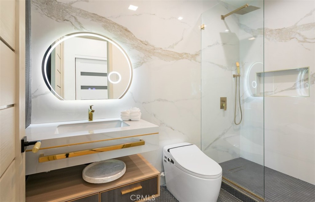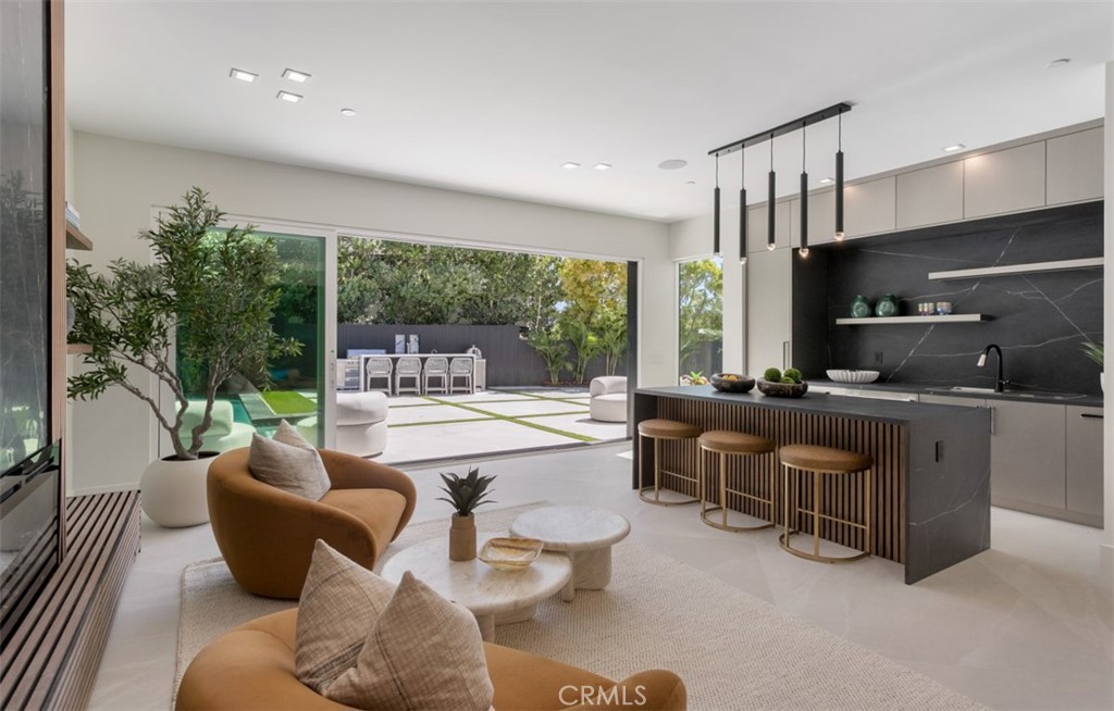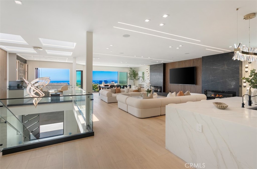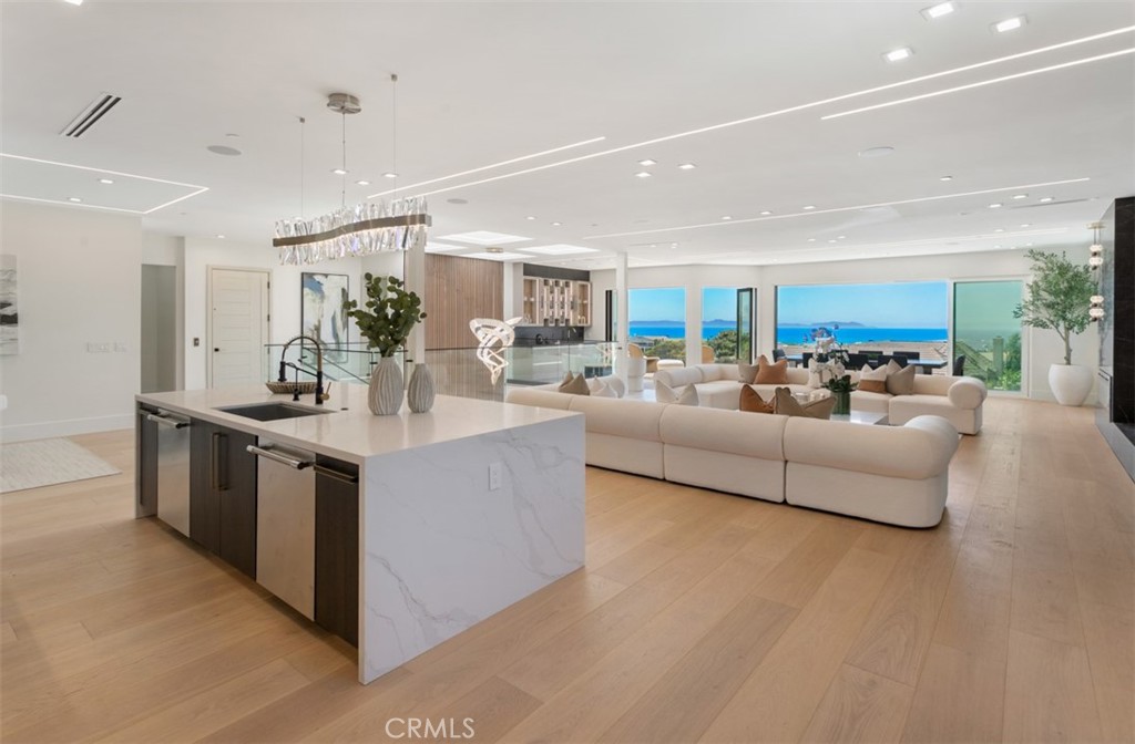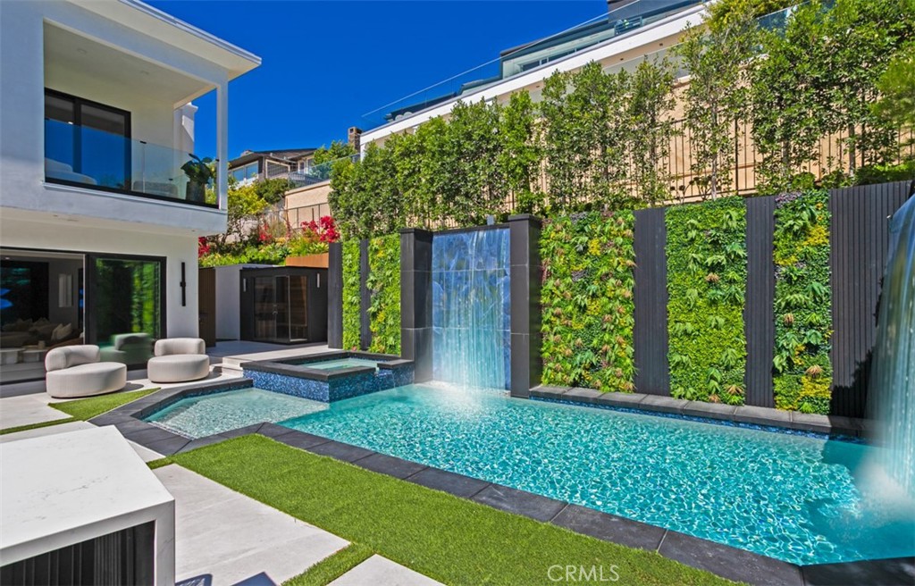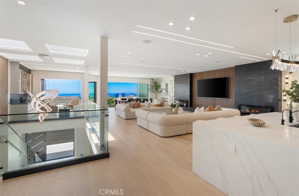 Perched at the end of a quiet cul-de-sac within the exclusive guard-gated enclave of Harbor Ridge, 4 Narbonne is a stunning showcase of design, function, and luxury. Completely reimagined, this architectural gem blends striking modern aesthetics with a warm, inviting ambiance--perfectly tailored for entertaining and everyday living. Beyond a private entry gate and custom oversized front door, you're welcomed into a dramatic open-concept layout filled with natural light, curated finishes, and an effortless indoor-outdoor flow. The main level offers three spacious bedrooms, including a junior primary suite with ocean views, and two secondary bedrooms that overlook a serene water feature. A sleek lounge with a fireplace, bar, and media wall adds to the home's entertainer appeal. Take the elevator upstairs, where panoramic views span the Pacific Ocean, Catalina Island, Newport Harbor, and city lights that stretch to downtown LA. Designed for both grandeur and comfort, this level features two additional bedrooms--one currently used as a home office with its own balcony--as well as a show-stopping primary suite wrapped in floor-to-ceiling glass. The spa-like bathroom and boutique-style closet complete the experience. The heart of the home includes both a front-facing designer kitchen and a full secondary prep kitchen, flanked by a breakfast nook, formal dining area, double fireplaces, and walls of sliding and bi-folding doors that dissolve the line between indoors and out. Step into your own private resort: a spectacular outdoor oasis with a pool, spa, dry sauna, multiple waterfalls, a BBQ island, fire table, and ample lounge and dining areas--designed to impress and built to entertain. With every box checked--guard-gated security, panoramic views, stunning finishes, and true turnkey luxury--this is coastal living at its finest.