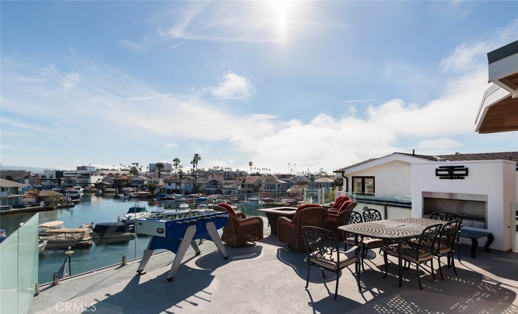 Set within the exclusive, guard-gated enclave of Balboa Coves--one of just 68 residences--this exceptional bayfront home offers a refined coastal lifestyle with unobstructed water views. Enjoy direct access to your own sandy beach and a private dock accommodating a 35-foot boat, all just moments from the best of Newport Beach. An elevator services all three levels, creating effortless flow throughout the home. The main level features an open-concept great room with wide-plank French oak floors, a sleek fireplace, and accordion doors that open to the waterfront, blending indoor and outdoor living. The chef's kitchen is beautifully appointed with a Wolf range, Sub-Zero refrigerator, Bosch dishwasher, wine refrigerator, walk-in pantry, and a generous island ideal for entertaining. A waterside dining area, en-suite guest bedroom, and powder room complete this level. Upstairs, the primary suite is a serene retreat with sweeping bay views, a private balcony, and a spa-inspired bathroom featuring a freestanding soaking tub, glass-enclosed shower, dual vanities, and a custom walk-in closet. Two additional en-suite bedrooms and a laundry room complete the second level. The expansive rooftop deck spans over 1,000 square feet and is designed for entertaining, featuring a fully built-out rooftop kitchen with commercial-grade equipment, panoramic bay views, and elevator access--perfect for hosting under the stars. An additional bedroom on the roof-deck provides versatility as a bedroom, gym, or an office. Enhanced by smart-home automation, an oversized two-car garage with a built-in, air-conditioned office, a private community park, and ample guest parking. Ideally located near Lido Marina Village, Fashion Island, and world-class golf, this is coastal living at its finest.
