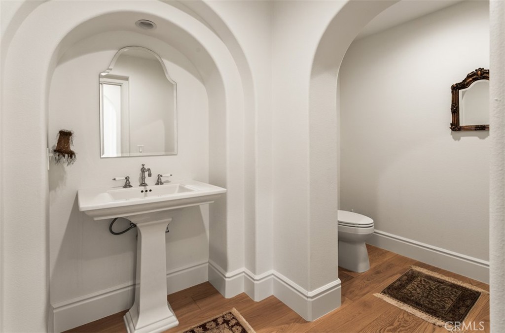 Designed for seamless indoor/outdoor living, the home's open floor plan flows effortlessly to the entertainer's backyard - complete with a spa, BBQ island, covered loggia, and multiple lounge areas - all capturing unobstructed vistas from Catalina Island to Palos Verdes. The private courtyard and refined stonework enhance the sense of tranquility and exclusivity.