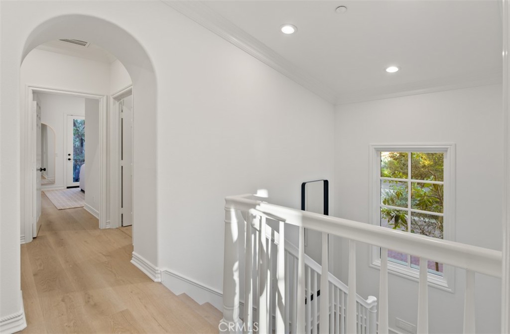 Welcome home to 5 Secret View, an elegantly reimagined residence set within the private and guard-gated enclave of Pacific Ridge in Newport Coast. This 3 bedroom, 3.5 bath property spans approximately 2,821 square feet of refined living space, blending timeless design with modern luxury. Natural light floods the interiors, highlighting crisp white finishes, new flooring, and elevated designer touches throughout. The kitchen and dining areas open to serene garden views framed by large picture windows, while the living room centers around a statement fireplace with soft neutral tones and layered textures that create a sense of effortless sophistication and relaxation. Upstairs, the primary suite offering a perfect retreat with its spa-inspired bathroom and custom detailing. Outdoors, enjoy the California lifestyle with a built-in BBQ, outdoor fireplace, lush professional landscaping, fountains, and ambient lighting, ideal for both everyday living and entertaining. Located moments from the world-class beaches of Crystal Cove, Fashion Island, and award-winning schools, 5 Secret View embodies the essence of coastal luxury in one of Newport Coast's most sought-after communities.
