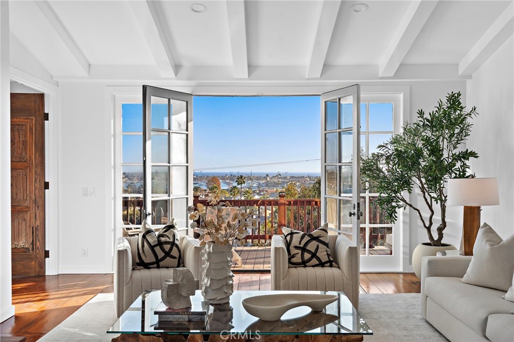 Perched in a prime front row location, 521 Kings Road is a residence that epitomizes the pinnacle of Newport Beach luxury living and offers prime development opportunity to build your dream home on one of Newport's most coveted streets. This stunning home offers some of the finest and ever-changing views in the area, including the beautiful Newport harbor and the charming harbor islands. As you approach the property, a vintage wooden entrance gate welcomes you into a private courtyard, offering a glimpse of the breathtaking harbor and ocean views that await inside. Upon entering the main level, you're immediately captivated by an oversized family room, expansive French doors in the living room, dining room, and primary suite opening onto a deck that spans the full width of the home. The kitchen, equally enchanting, features a generous layout with a charming 'eat-in' nook offering picturesque views on one side and a cozy fireplace on the other. Upstairs, you'll find a large secondary bedroom versatile enough to serve as a bedroom, office, or media den, complete with serene views of the entrance courtyard through its French doors. Descending to the lower level, you're greeted by a spacious bonus room with a wet bar and a library wall, anchored by one of the home's five fireplaces. This level also includes two large en-suite bedrooms and an oversized laundry room. Walk-out access leads to a terraced view terrace and pool area, where artisan brickwork and meticulously curated gardens create an inviting outdoor retreat. Every detail in this home enhances its unique charm--from the glowing wide plank wood floors and vintage European fireplace surrounds to the antique carved and reclaimed wood doors, custom millwork, and recent updates to the kitchen and baths. 521 Kings Road offers a rare chance to own a premier Newport Beach property, providing unparalleled views and a luxurious lifestyle in one of the most coveted locations in the area. The property currently has a tenant in place until January paying $15,000/month.