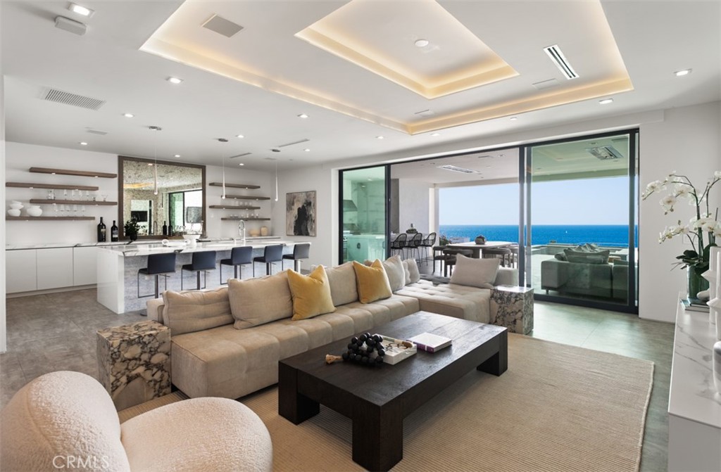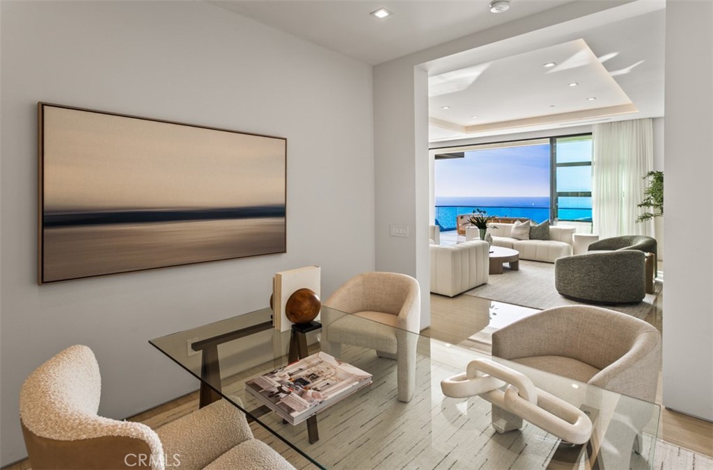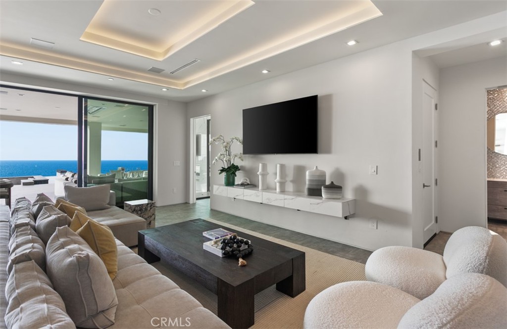 Perched within the exclusive, guard-gated enclave of The Strand at Headlands, 7 Pacific Waves Circle presents a rare opportunity to own a striking coastal retreat in the lower Strand, defined by modern architecture, privacy, and commanding ocean views. Thoughtfully designed to capture the beauty of Dana Point's coastline, the residence offers a seamless blend of modern sophistication and effortless indoor-outdoor living. From the moment you enter, sweeping Pacific and Catalina Island vistas set the tone. Expansive walls of glass frame the main living spaces, allowing natural light and ocean breezes to pour throughout the home. The open-concept main level is designed for both elevated entertaining and everyday comfort, anchored by a showpiece kitchen featuring premium appliances, a statement island, and refined custom finishes. Adjacent living and dining areas flow seamlessly to generous outdoor terraces, creating an ideal setting for gatherings at any scale. The upper level is dedicated to tranquility, with a luxurious primary suite that enjoys panoramic ocean views, a private terrace, spa-inspired bath, and an oversized walk-in closet. Additional guest suites are thoughtfully positioned throughout the home to provide privacy and comfort for family and visitors alike. The lower level is a true entertainer's retreat, offering a cinematic media lounge, secondary living space, gym with sauna and steam room, highlighted by effortless access to the resort-style backyard. Outdoors, the infinity-edge pool with sunken seating area, spa, fire features, and multiple lounging areas create an environment that feels both intimate and grand, perfect for entertaining or unwinding against the backdrop of the Pacific. Completing the residence are premium amenities including an elevator, smart home technology, and a spacious multi-car garage. Residents of The Strand enjoy exclusive access to the beach, coastal trails, and resort-style amenities, all just moments from the charm, dining, and harbor of Dana Point. A rare blend of modern architecture, prime guard-gated location, and California beach lifestyle, 7 Pacific Waves Circle represents coastal living at its highest level.
