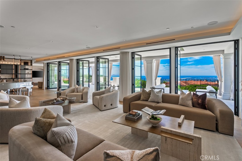 A Triumph of Modern Elegance in Pelican Hill, Presenting 7 Sailview, a newly completed architectural masterpiece within the revered guard-gated enclave of Pelican Hill in Newport Coast. Completed in late 2024, this custom estate is a rare fusion of international craftsmanship, timeless design, and uncompromising quality -- a true jewel along Southern California's most coveted coastline. Commanding a prominent position on an expansive premium parcel, the residence offers unobstructed views of the Pacific Ocean, Catalina Island, Newport Harbor, and twinkling City lights from nearly every room. A sweeping circular motor court sets a tone of arrival, leading into interiors that exude understated opulence and architectural integrity. No detail has been overlooked from stunning custom chandelier systems, custom three story steel staircase, as well as exceptional architecture boasting a true open concept. A curated palette of globally sourced natural stones -- including exotic Italian Calcutta and quartzites -- complements artisan-crafted inlaid wood flooring, hand-applied Roman clay walls, and bespoke ironwork and millwork throughout. Expansive Fleetwood motorized pocket doors seamlessly connect interior living spaces to the resort-style exterior, offering a lifestyle of effortless indoor-outdoor living. Spanning over ~10,600 square feet, the home is thoughtfully designed with 7 lavish bedroom suites and 9 impeccably appointed oversized bathrooms. The residence is highlighted by a dream primary bathroom clad in Calcutta stone featuring a solid Calcutta stone floating bathtub, owners private outdoor terrace, and bespoke designer dual closets. Amenities rivaling the world's finest resorts include a state-of-the-art theater, professional-grade gym, executive office, and full-service hair salon. Outdoors, the grounds are a private sanctuary -- featuring a sleek zero-edge pool and spa with Rolls Royce themed Starlight bottom, outdoor kitchen, multiple fire features, lush landscaping, multiple covered loggias + terraces, and balcony spaces all framed by panoramic coastal views and the golden hues of Southern California sunsets. Moments from world-class Pelican Resort and Golf Club, beaches, luxury resorts, fine dining, and exceptional schooling options, 7 Sailview represents a once-in-a-generation opportunity to own one of the region's most distinguished newly built estates -- where every element is elevated and perfectly executed, where no compromise has been made.