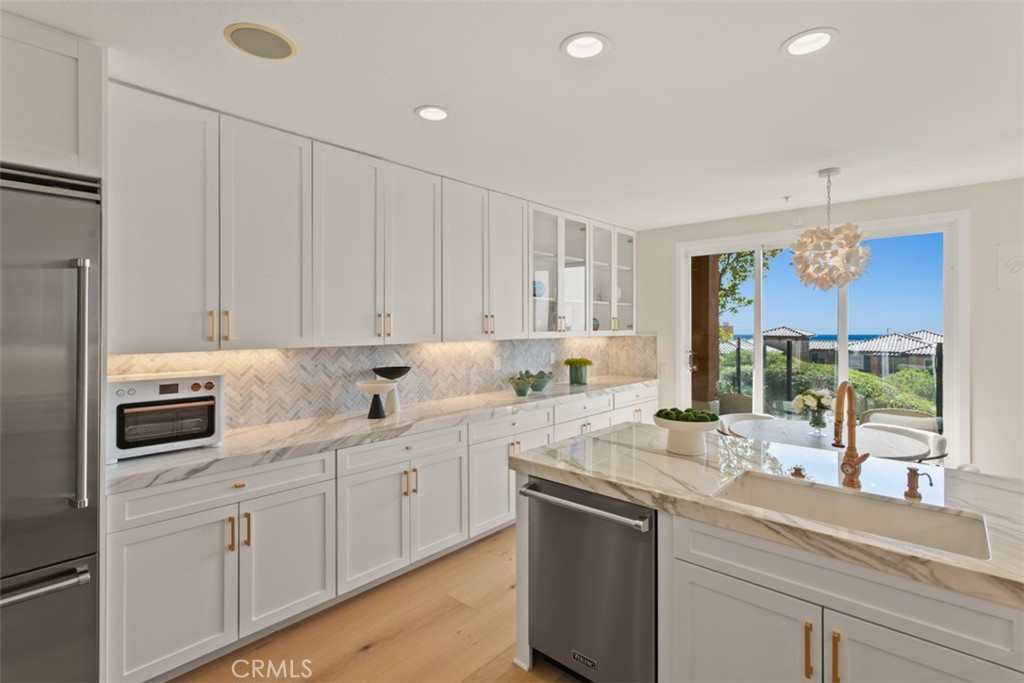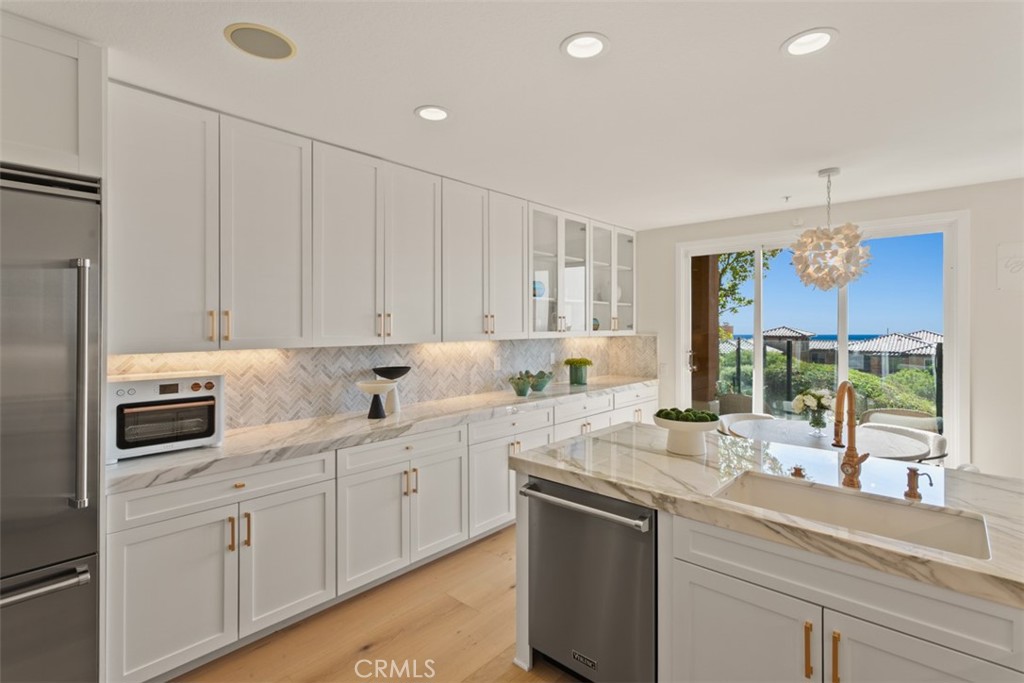 Massive $500,000 price improvement! Gorgeous Catalina, Ocean, and Coastline views from Newport Coast to Palos Verdes, Long Beach, and Los Angeles. Newly renovated & completed in 2025 this Newport Coast residence features top of the line finishes, custom cabinetry, and artisan level stone work. Uniquely positioned to maximize views of the Pacific Riviera from both levels & a recently completed renovation, there is no other property offered like this in Newport Coast. Set within the prestigious gated enclave of Altezza in Newport Coast, this newly renovated residence captures sweeping panoramic vistas--spanning the Pacific Ocean, Catalina Island, Newport Harbor, sparkling city lights, & the distant Saddleback Mountains. The home offers a rare blend of elegance, comfort, and coastal sophistication. Upon entering the property, one will notice a highly refined level of detail. Nearly every aspect of the property remodel was thought of during its 15 month renovation process. From new floorings, custom millwork & cabinetry, lighting, stone selections, AC Systems & air scrubbers, bathrooms, the garage, & much more, this property is a true example of what a "move in ready" property is suppose to feel like. Walking through the entry level, one will notice a main level bedroom with a well appointed bathroom, dining room, kitchen framed by ocean views & a private patio pavilion, open breakfast nook, & large family room with double vaulted ceilings. The family room is further highlighted with a dramatic stone fireplace, well positioned to create a cozy environment for relaxation & rejuvenation. Upstairs, the expansive primary suite is a true retreat, complete with a private balcony showcasing exceptional views, and a spa-style bath featuring dual vanities, a soaking tub, & separate shower. A secondary en-suite bedroom completes the upper level along with a spacious bonus room. The property also showcases a full laundry room and direct access 2 car garage that has been beautifully upgraded with flooring, cabinetry, lighting & a new garage door system. This property also features direct access to the Newport Coast Community Center and Clubhouse, featuring a Junior Olympic saltwater pool, sport courts, & kitchen with lounging areas. This property has immediate proximity to scenic trails, top-rated schools, & world-class shopping & dining at just minutes away.