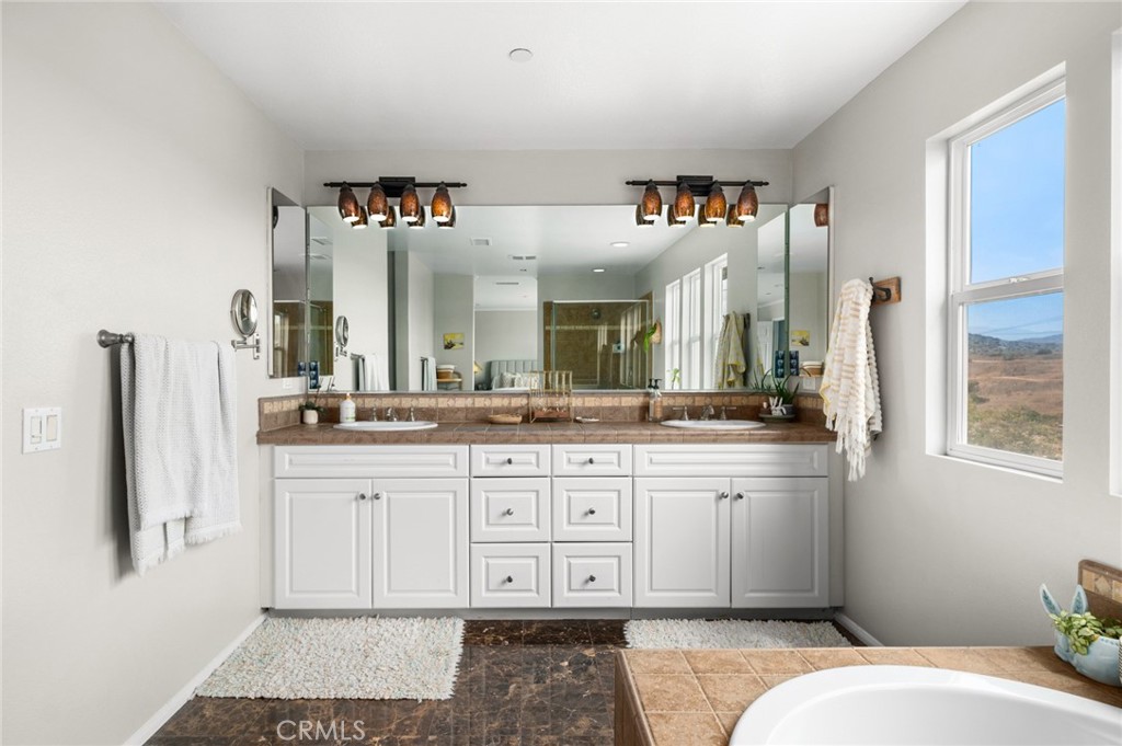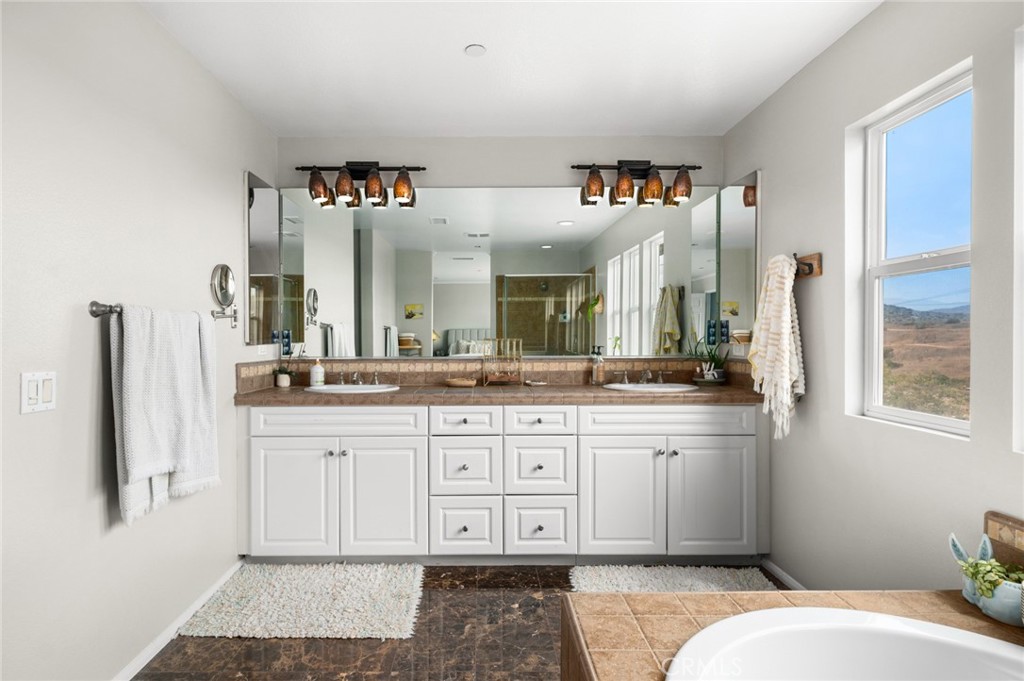 Serrano Heights Casita - Tucked away on a quiet cul-de-sac with views of the rolling hills, this upgraded 3-bedroom + loft home offers the perfect balance of comfort and style. The open layout features luxury vinyl plank flooring, granite kitchen with gas range, and seamless flow to a private patio for alfresco dining. NO COMMON WALLS. Upstairs includes a flexible loft, spacious bedrooms, and a primary suite with views of the rolling hills, dual vanities, soaking tub, walk-in shower, and expansive closet. The backyard provides space to relax or entertain with a barbecue area, dining area, and landscaped planters. Just steps from the community pool, spa, clubhouse, and nearby parks, with top-rated schools and Anaheim Hills Golf Course close by.
