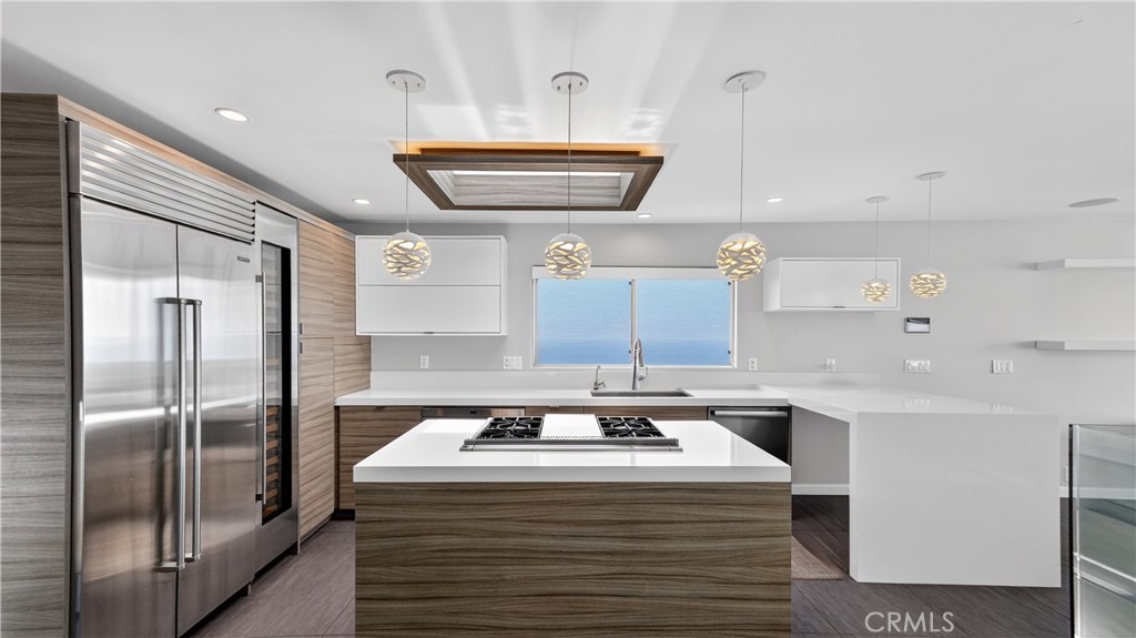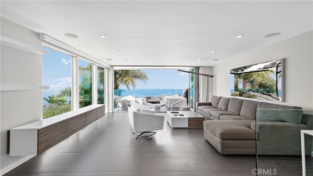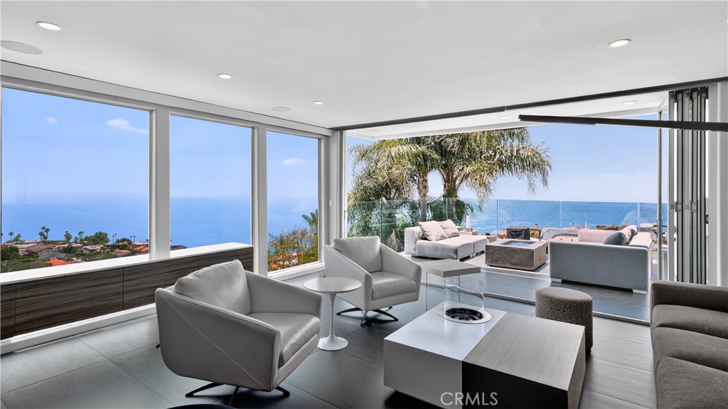 Fully furnished. Open to 6 months, month to month, short term- negotiable. Located at the end of a private cul-de-sac atop Arch Beach Heights, this striking split-level contemporary residence offers unobstructed 180-degree ocean and coastline views, with Catalina Island and twinkling city lights stretching beyond Laguna Beach, visible from nearly every room. Set on an exceptionally rare double-wide lot, the home spans nearly 2,350 square feet and features 4 bedrooms, 3.5 baths, a dedicated office (optional 4th bedroom), a private theater, and a custom wine room. Originally reimagined in 2007 by acclaimed designers Anders Lasater and Mark Singer, the home blends bold design with timeless quality. The spacious primary suite includes a custom-built closet system and an expansive spa-like bathroom complete with a steam shower, soaking tub, and a built-in TV for the ultimate retreat. Upstairs, the main living area boasts an open-concept layout with hardwood and stone flooring, a chef's kitchen with stainless steel appliances--including a Bosch ultra-quiet dishwasher--cherry wood cabinetry, granite counters, skylights, a breakfast bar with a mini-fridge, and a center island cooktop. Sliding doors lead to both front and rear decks, seamlessly extending the living space outdoors. This exceptional property offers the rare combination of architectural sophistication, functional design, and breathtaking natural beauty. Just moments from world-class beaches, hiking trails, restaurants, and vibrant village life, this home is not only a peaceful retreat but also a gateway to the very best of coastal living. Whether you're entertaining guests or enjoying a quiet evening overlooking the Pacific, this one-of-a-kind residence delivers an unparalleled lifestyle experience.