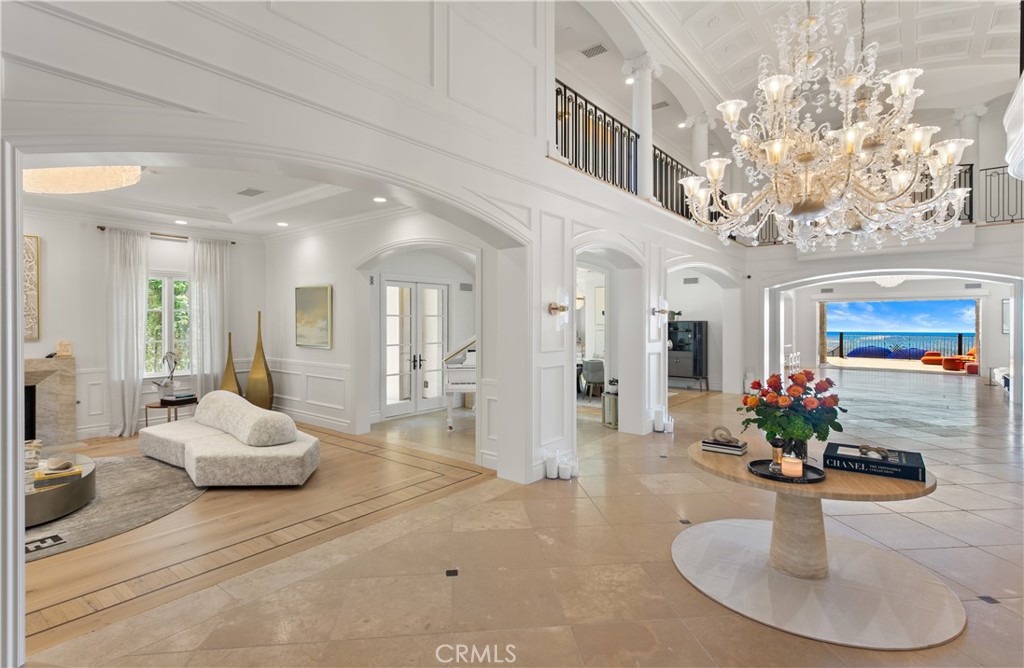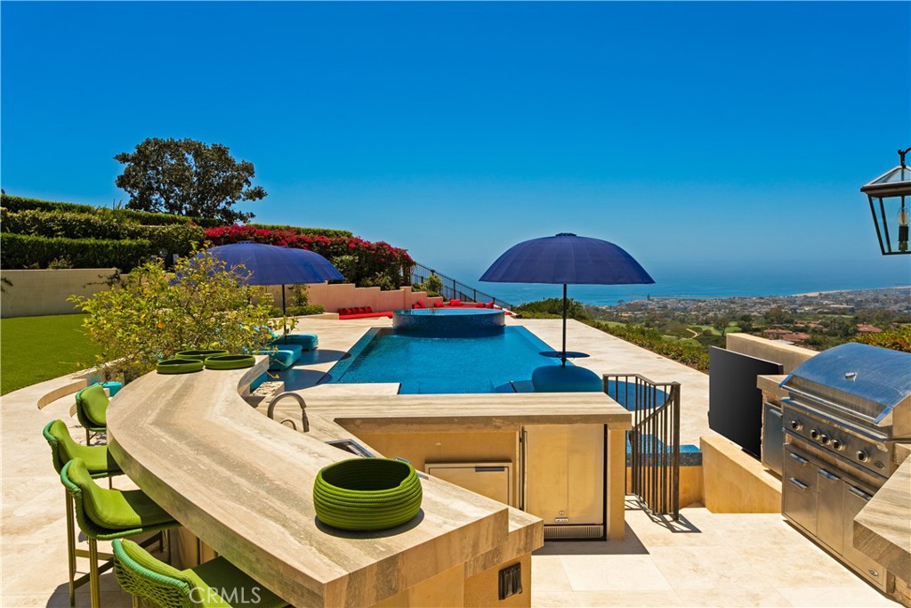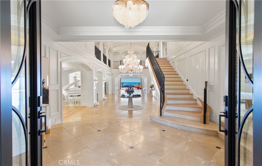 A true timeless masterpiece sited on a front-row, premier view lot designed to maximize dramatic harbor, ocean, and Catalina Island vistas, 9 Pelican Crest Drive redefines coastal luxury with a rare blend of sophisticated design, state-of-the-art technology, and resort-style amenities. Spanning approximately 11,400 square feet of refined interiors and set on an expansive 32,904-square-foot parcel, this estate was newly renovated in 2025 to meet the highest standard of modern elegance. Masterfully appointed and fully furnished with iconic pieces from Europe's most renowned design houses--including Giorgetti, Poltrona Frau, Edra, Fendi Casa, Hermes, Minotti, Maxalto, and Poliform--the home is a true showcase of global refinement. Custom Barovier & Toso chandeliers from Murano, Italy, illuminate the interiors, casting a warm, inviting vibrancy throughout the living spaces. Designed to inspire both grand-scale entertaining and elevated daily living, the home features a new 12-seat private theater with custom leather seating and cutting-edge audiovisual systems, a dedicated playroom anchored by a 14-foot LED video wall, and a private gym with a transparent 75" mirror TV. A private elevator services all levels of the residence, offering seamless convenience throughout. Expansive formal and casual living areas open to ocean-facing terraces, creating a flawless flow between indoor and outdoor living. Outdoors, newly designed landscaping frames the home's commanding views, while vibrant furnishings by Paola Lenti elevate every exterior space with contemporary elegance. A brand-new infinity-edge pool finished in shimmering glass tile serves as the estate's centerpiece, offering a stunning visual and sensory experience. A full smart home system and top-tier security infrastructure complete this one-of-a-kind offering--delivering the pinnacle of style, innovation, and peace of mind in one of Southern California's most coveted ocean-view communities.