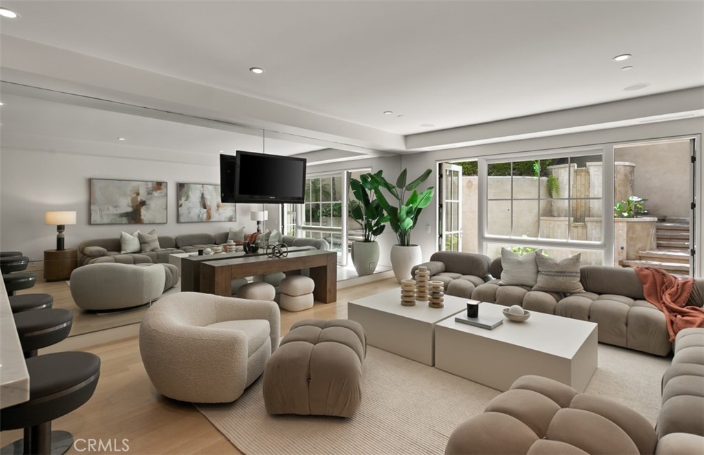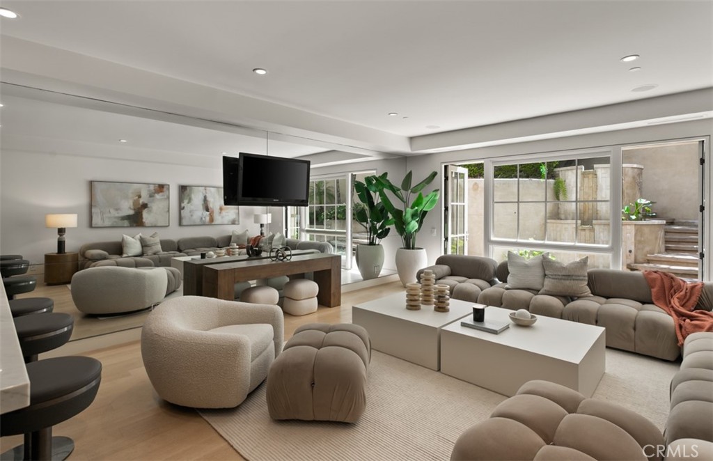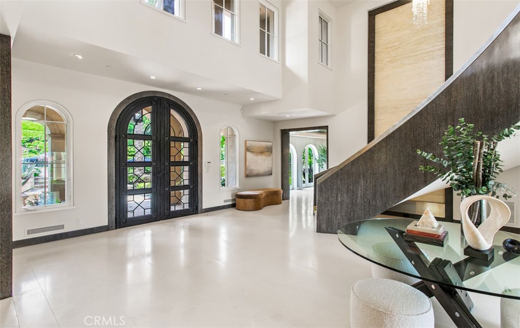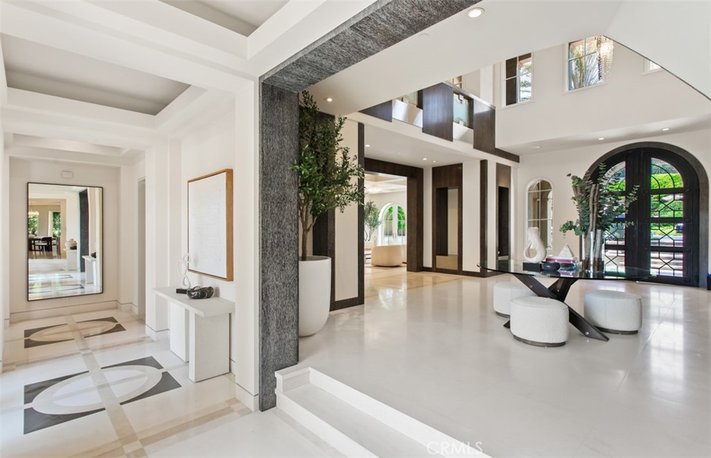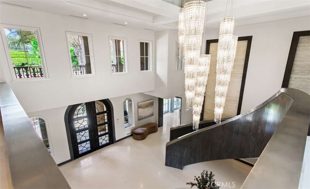 Situated within the prestigious guard-gated community of Pelican Crest, this remarkable custom estate offers approximately 10,310 square feet of refined modern European living, seamlessly blending timeless architecture with contemporary sophistication. Beyond the grand double glass-and-iron entry doors, a dramatic two-story foyer with a sweeping floating staircase and French limestone flooring sets the tone for the home's exceptional transitional design. Light-filled formal and casual spaces flow effortlessly, including a formal dining room with access to the grounds and a gourmet chef's kitchen appointed with Viking and Miele appliances, custom cabinetry, and elegant stone surfaces. The great room, anchored by a striking onyx fireplace and sophisticated wet bar, opens through three sets of French doors to the resort-like backyard, creating a natural extension of indoor and outdoor living.