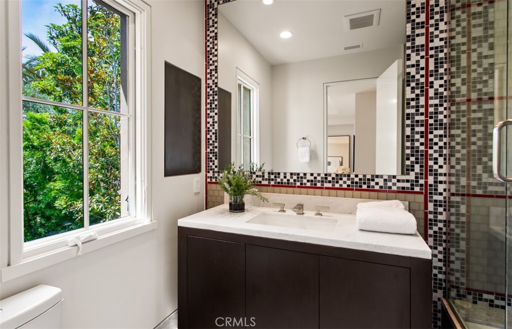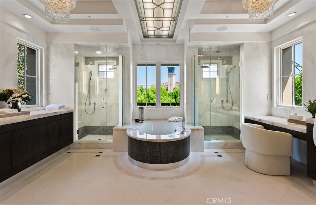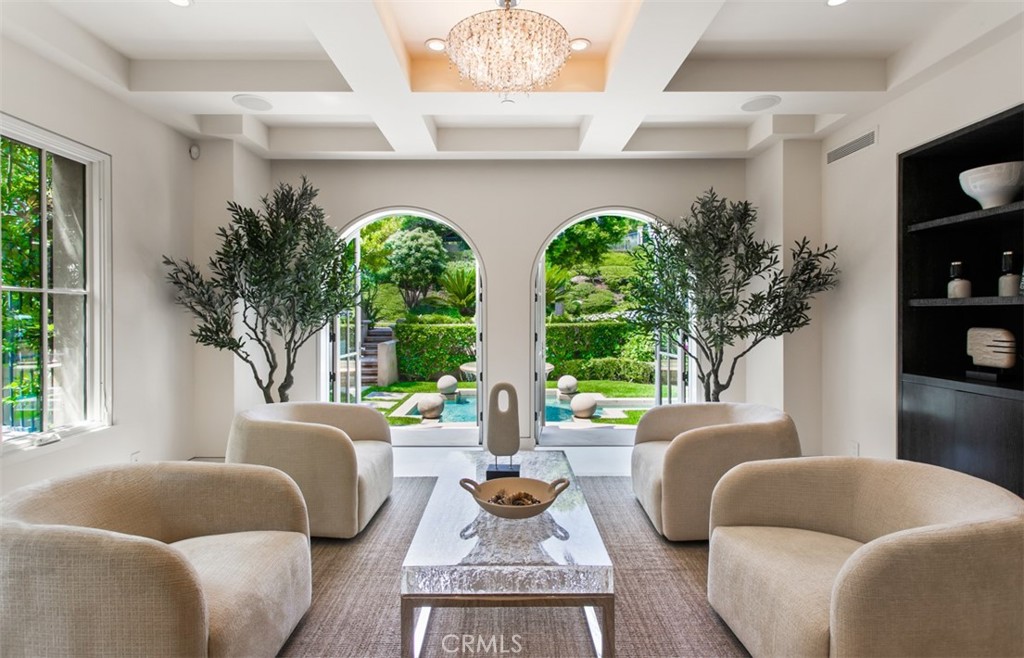 The lower level is dedicated to leisure and wellness, offering a steam room, sauna, gym, temperature-controlled wine cellar, and a state-of-the-art home theater with an adjoining lounge/game area. Upstairs, the luxurious primary suite features a spacious sitting area and spa-inspired bath with dual showers, under-lit onyx countertops, and a deep soaking tub. Additional bedroom suites each include their own beautifully finished bathrooms. Outdoors, the residence's modern European influences are expressed through symmetrical design and the elegant use of thoughtful materials, creating a private resort setting complemented by breathtaking canyon and peekaboo ocean views. The grounds showcase an infinity-edge pool, spa, fire pits, multiple fountains, and two built-in BBQs--an idyllic backdrop for both intimate gatherings and grand-scale entertaining. All within minutes of Pelican Hill Resort, world-class beaches, fine dining, award-winning schools, and luxury shopping, this estate embodies a rare fusion of sophisticated modern European style and the best of California coastal living.