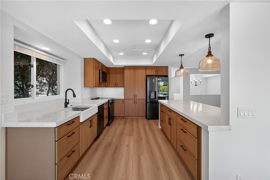 A newly reimagined 4 beds, 2.5 bath residence with ocean views in the gated community of The Views. This home features all new flooring, recessed lighting, and fresh interior paint. The chef's kitchen offers new LG appliances, custom cabinetry, quartz countertops, and a double-bowl farmhouse sink, while the adjacent living area is anchored by a fireplace accented with Zia terracotta tile.