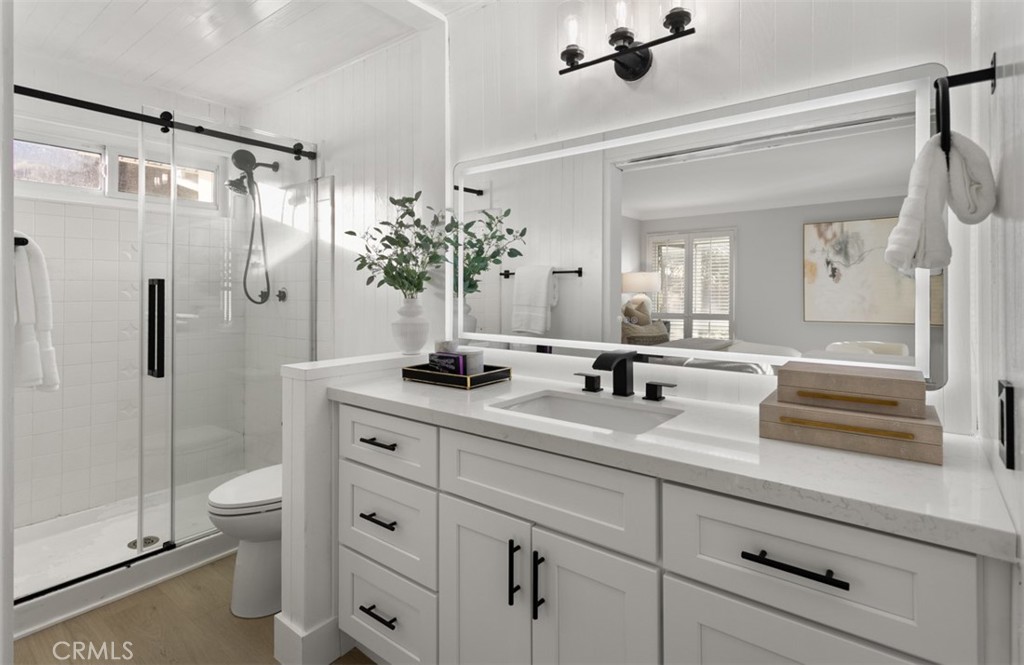 Brand-new wide-plank flooring flows beneath your feet, guiding you through an open-concept great room that opens effortlessly to a private resort-caliber backyard featuring a sparkling solar-heated saltwater pool and serene outdoor living spaces. The chef's kitchen is a masterpiece of form and function, showcasing gleaming new quartz countertops, premium stainless steel appliances, custom cabinetry, and garden windows framing pool views.